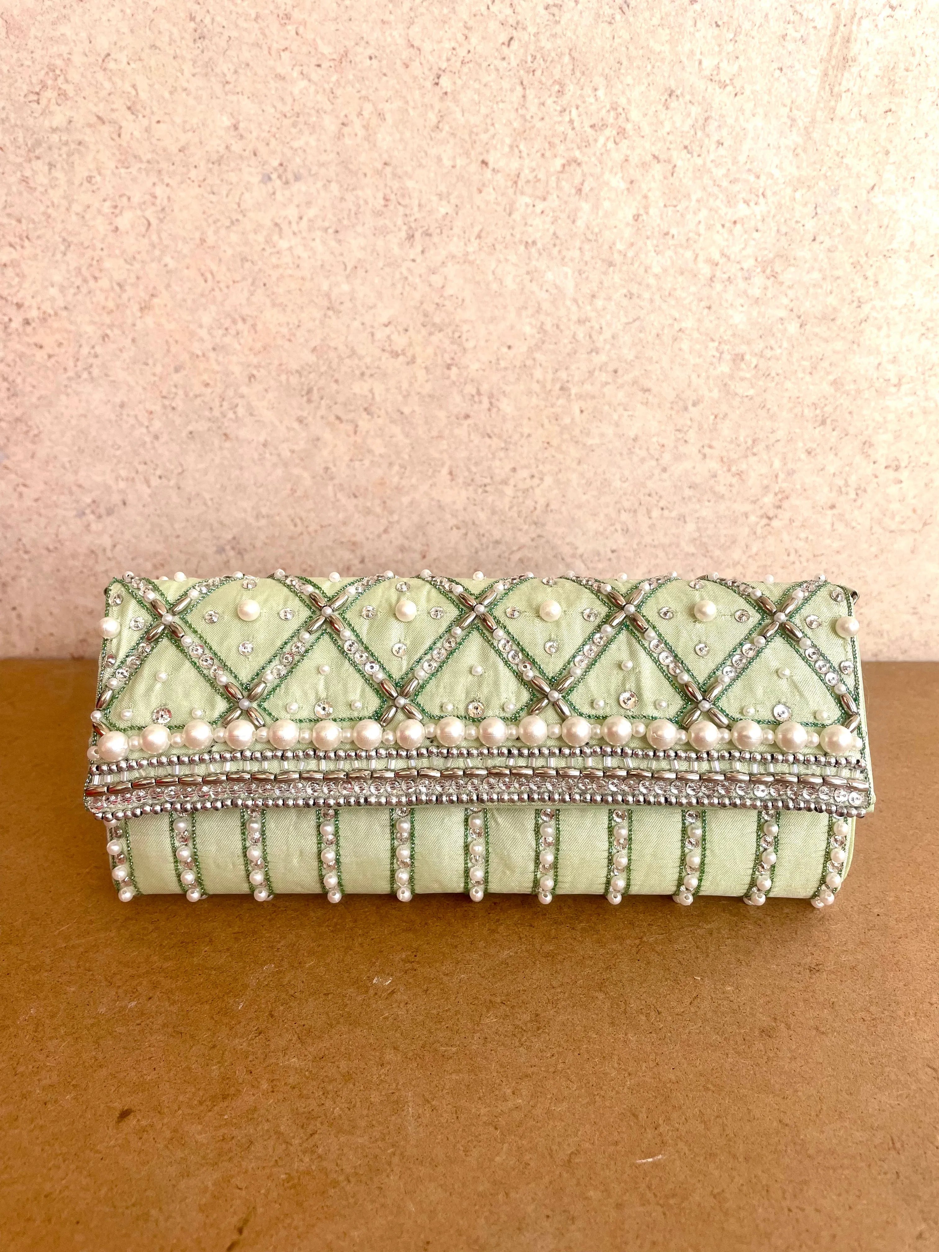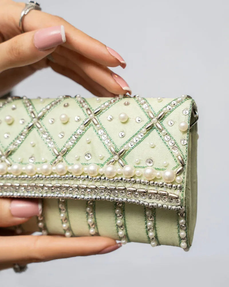 Pastel Green Clutch with Handwork