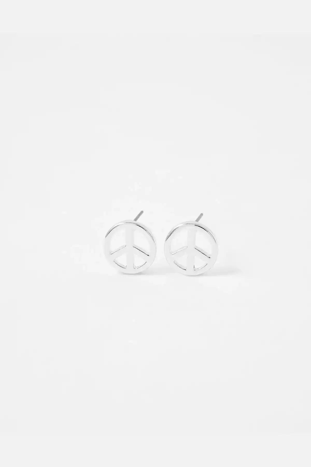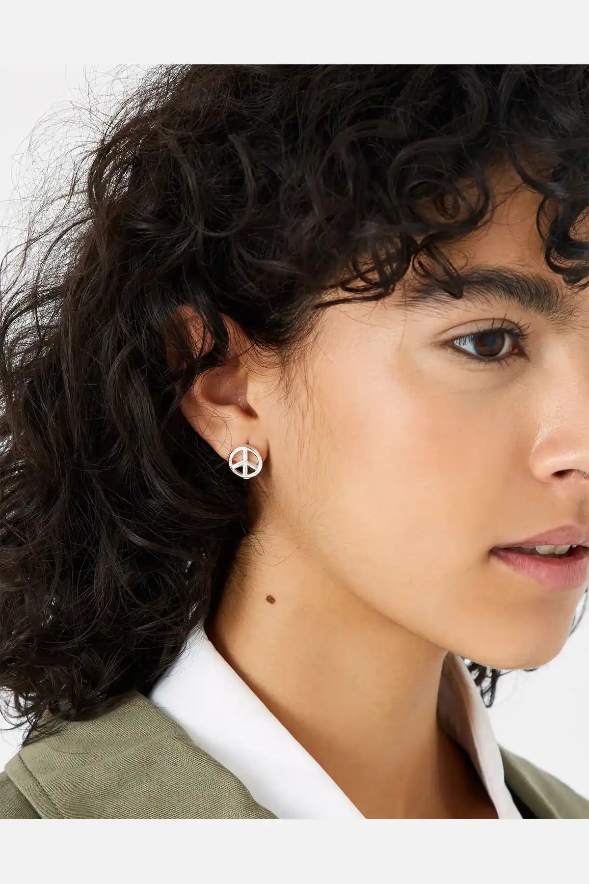 Go retro with this pair of peace sign studs! They'll add a fun twist to any day or evening outfit. Created in silver-tone metal. Non-refundable.