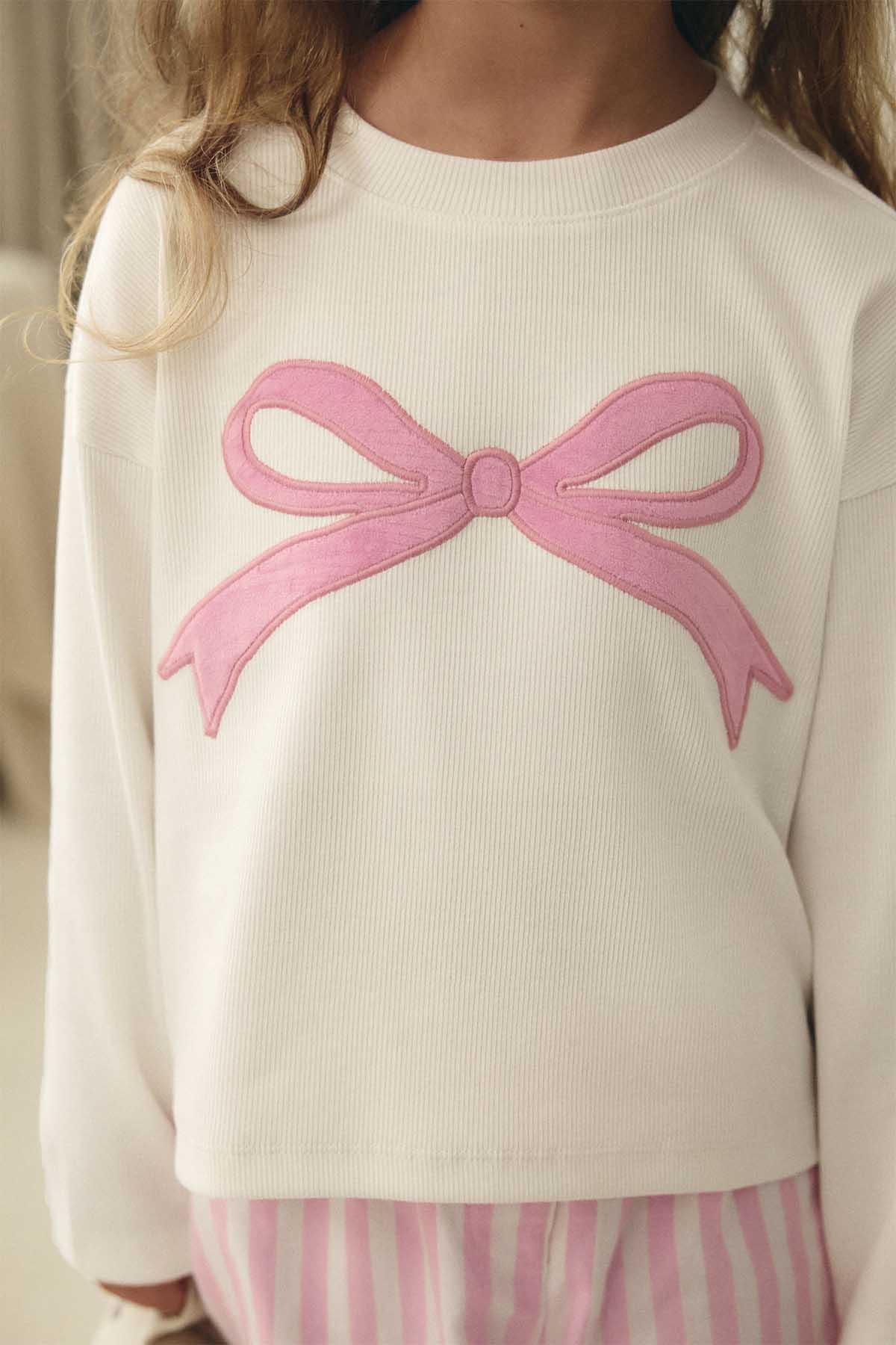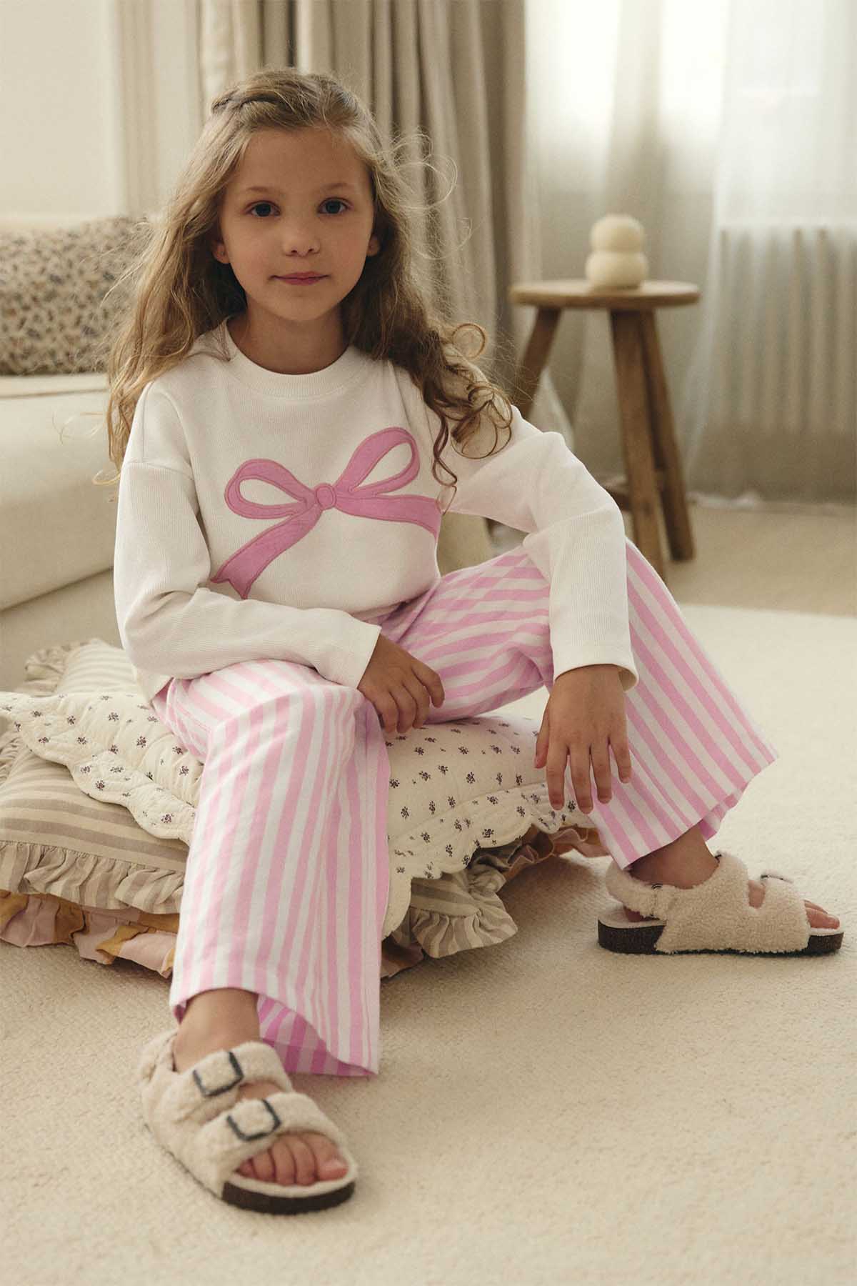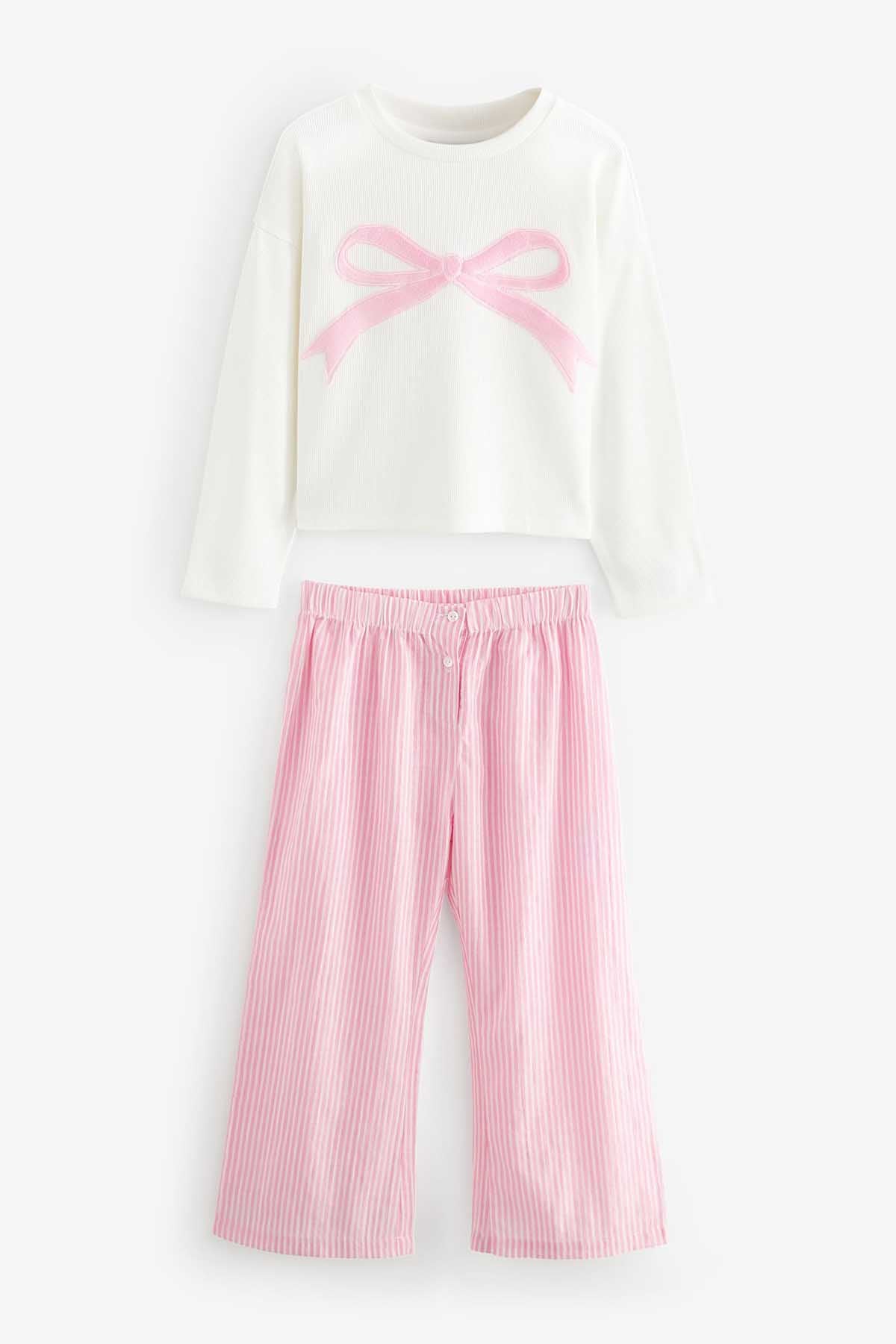 Pink Bow Stripe Woven Pyjamas 9mths-16yrs