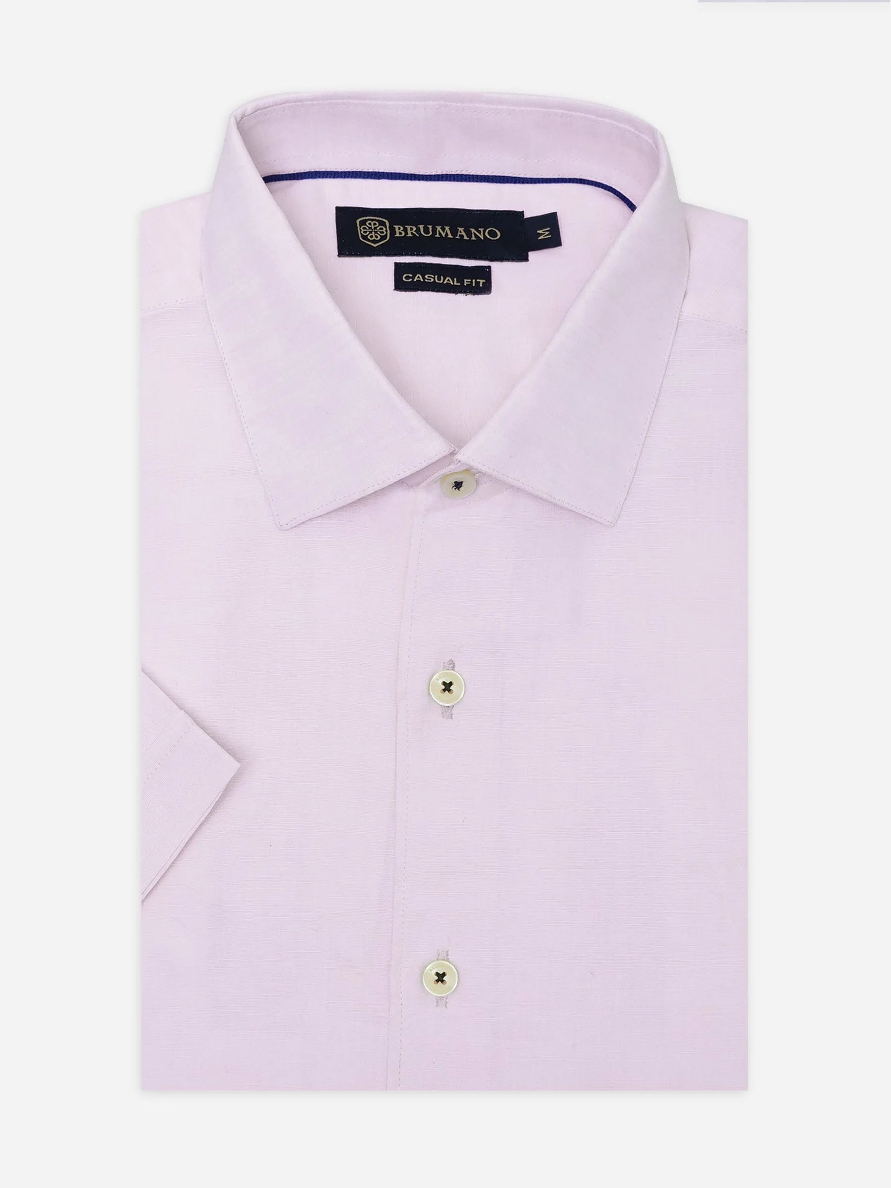 Stay cool and stylish in this pink half sleeve shirt, crafted from breathable, lightweight linen. Designed for effortless comfort, it’s the perfect pick for warm days and casual outings.