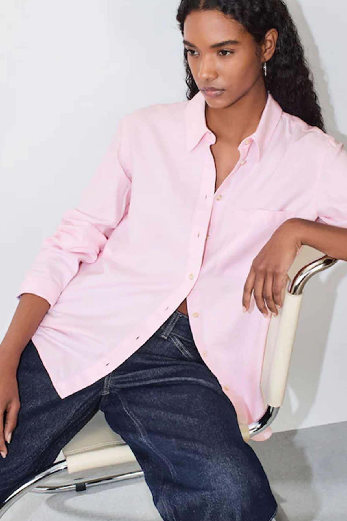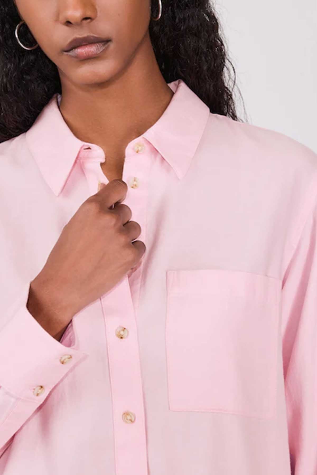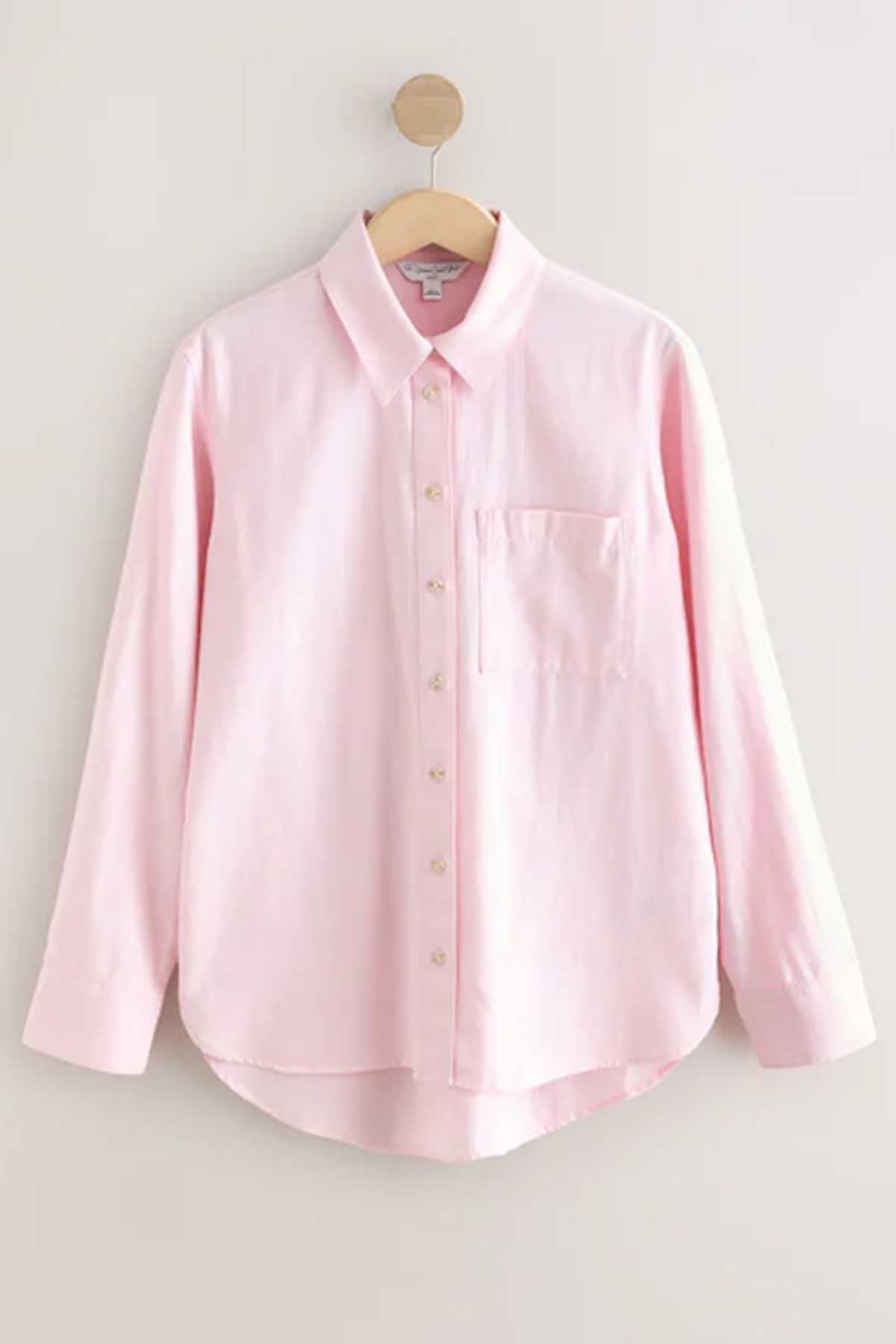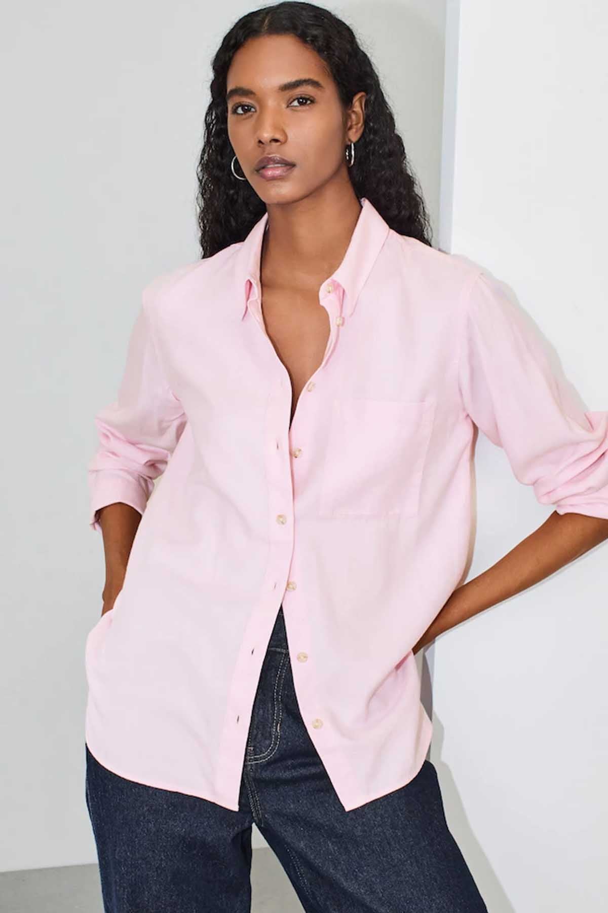 Pink Relaxed 100% Cotton Button Down Casual Long Sleeve Shirt
