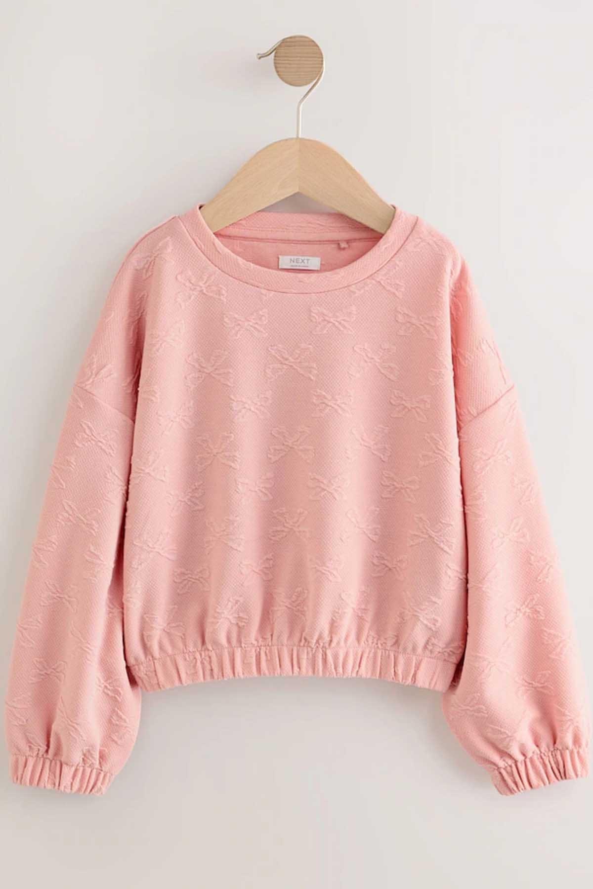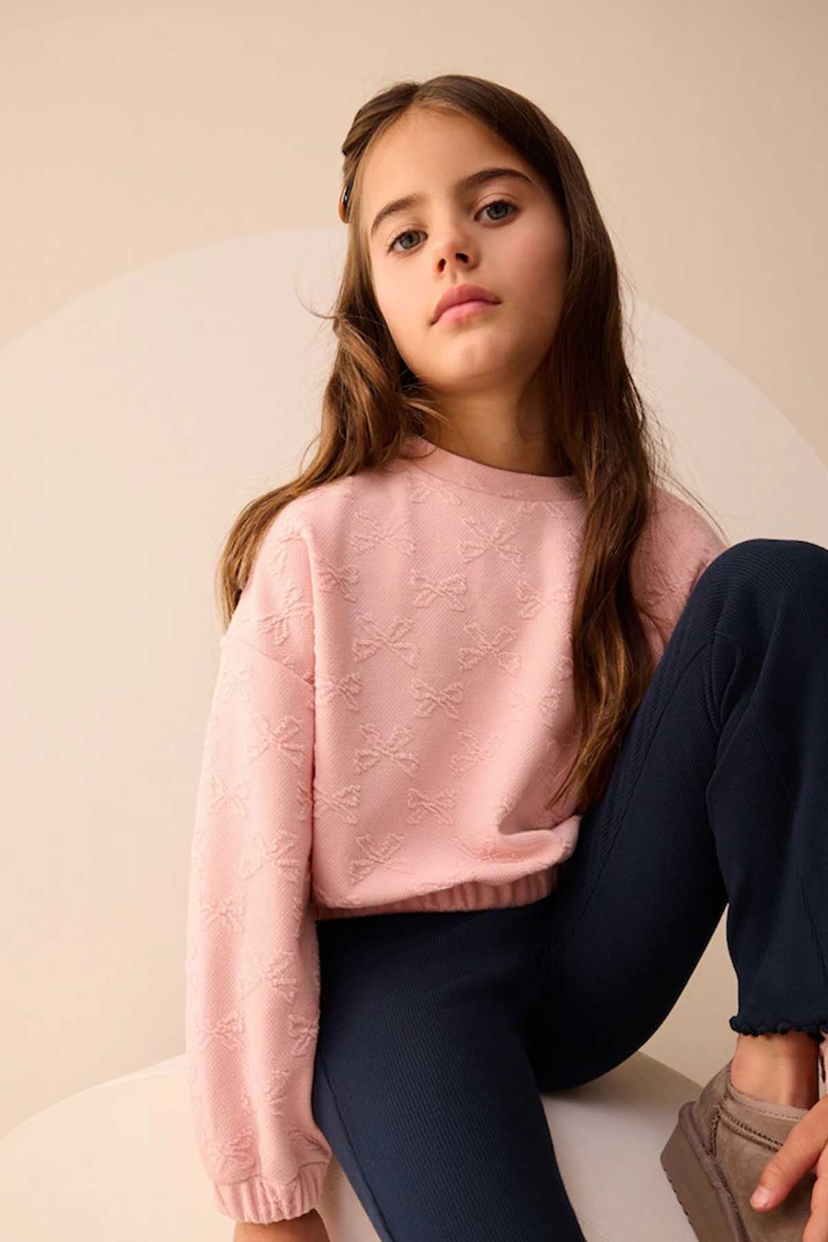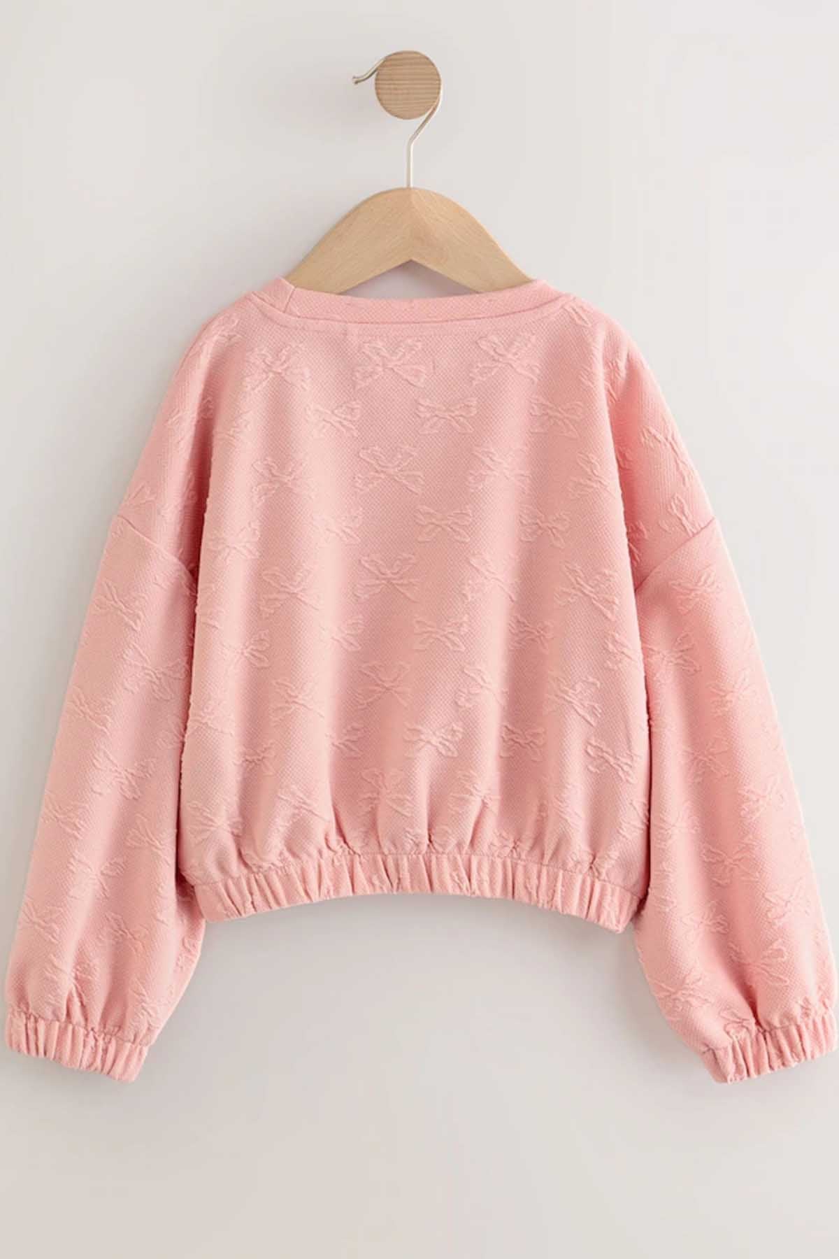 Pink Textured Bow Long Sleeve Top (3-16yrs)