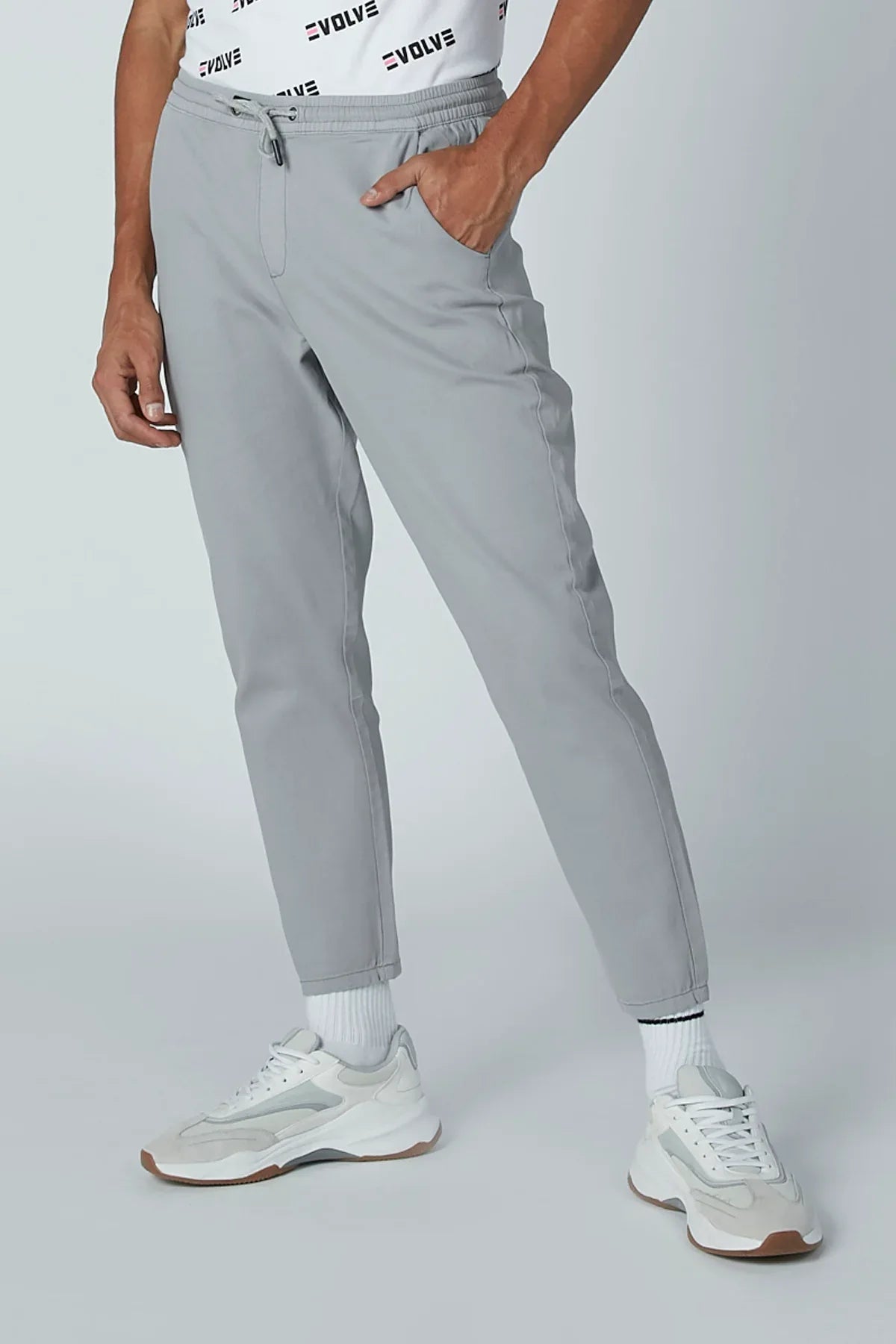 Plain Mid-Rise Trousers with Pocket Detail and Drawstring