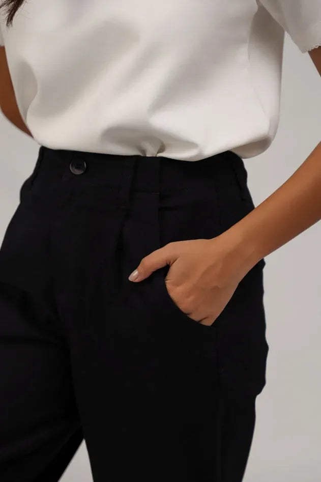 - Just Enough Structure: Subtle front pleats and a fixed waistband bring shape without stiffness.
