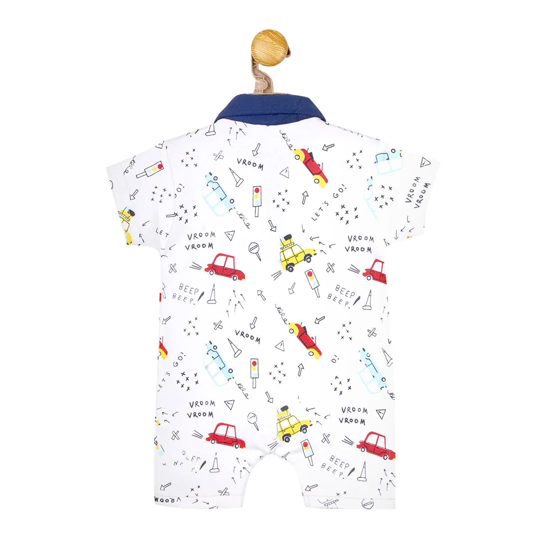 This baby polo bodysuit is sure to be a star of your baby’s wardrobe this season. The soft interlock fabric will keep them comfortable all day long, while the stylish printed scenario of traffic signals and speedy cars and taxis will catch all the attractive eyes. It is perfect for any occasion