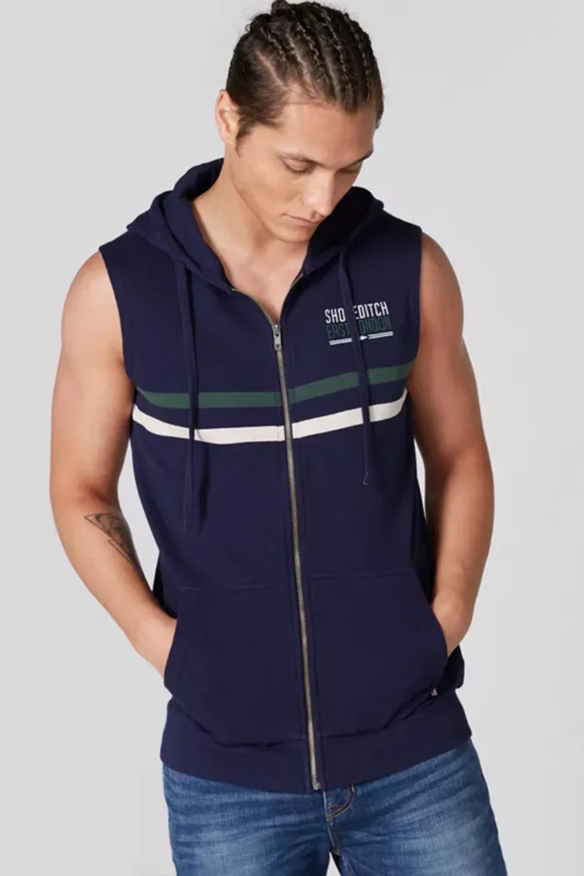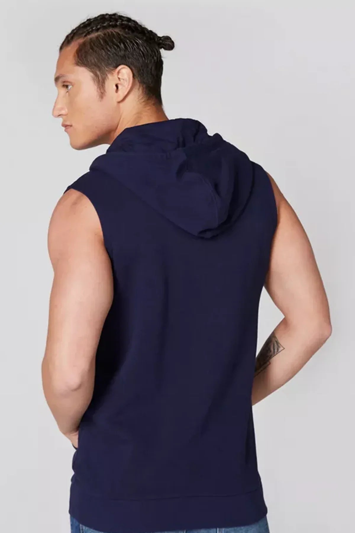 Printed Sleeveless Jacket with Zip Closure and Hood