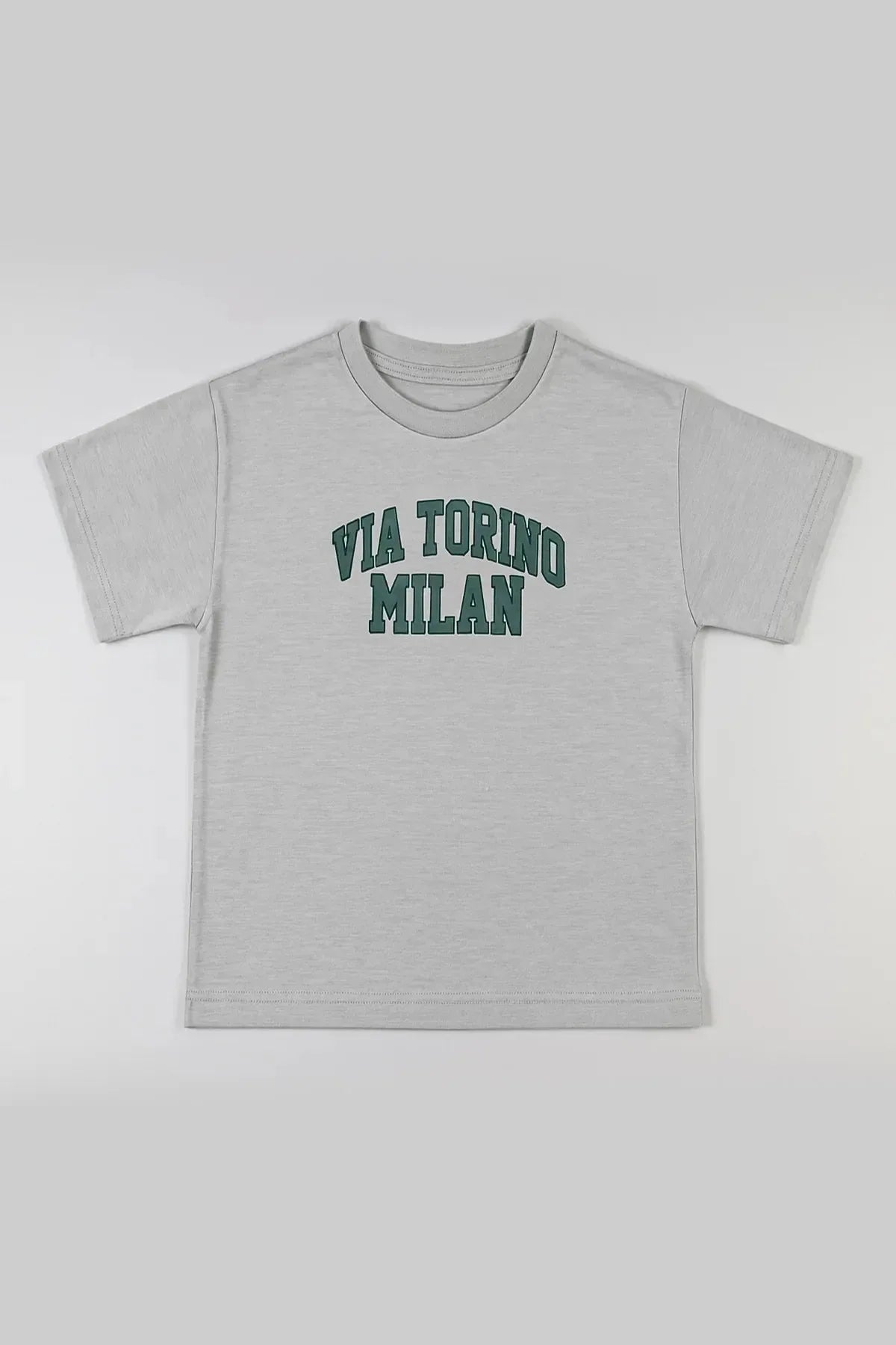 Bring European street-style flair to your child's wardrobe with this pastel pink “Via Torino Milan'' graphic t-shirt. Made from soft cotton with a classic crew neck fit, it's the perfect blend of comfort and fashion-forward style for everyday wear.