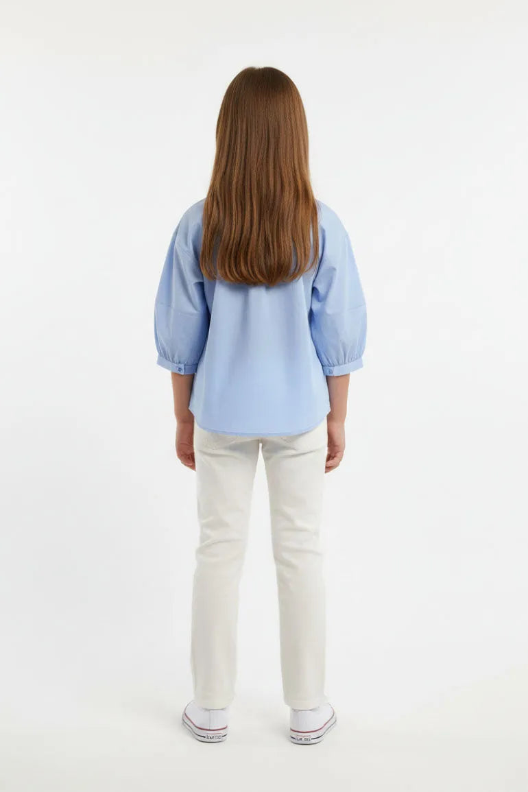 Puff Sleeve Button-Down Top for Girls - Light Blue