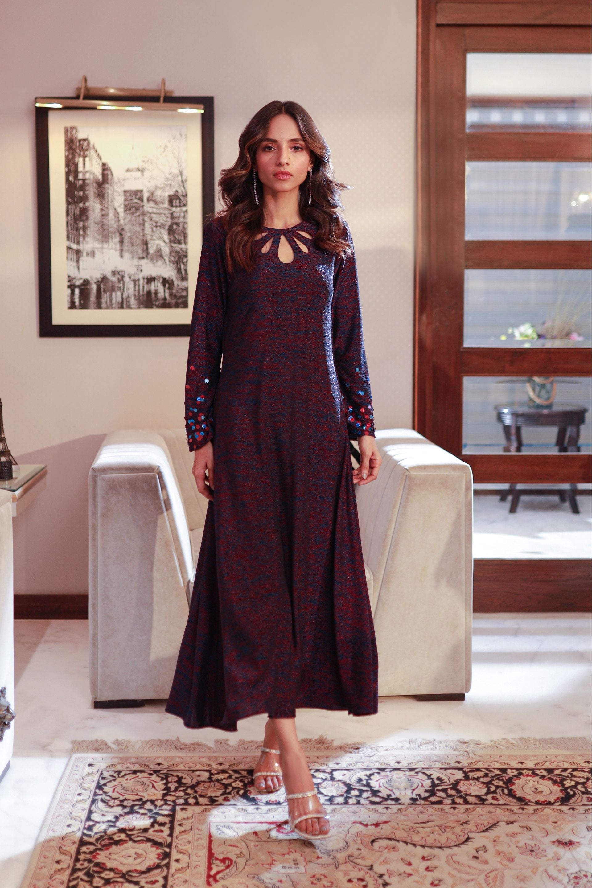 Elevate your wardrobe with the Blue and Red Sparkling Long Dress. This exquisite piece combines elegance and artistry, making it an essential addition to your collection. Embrace sophistication and make a lasting impression wherever you go!