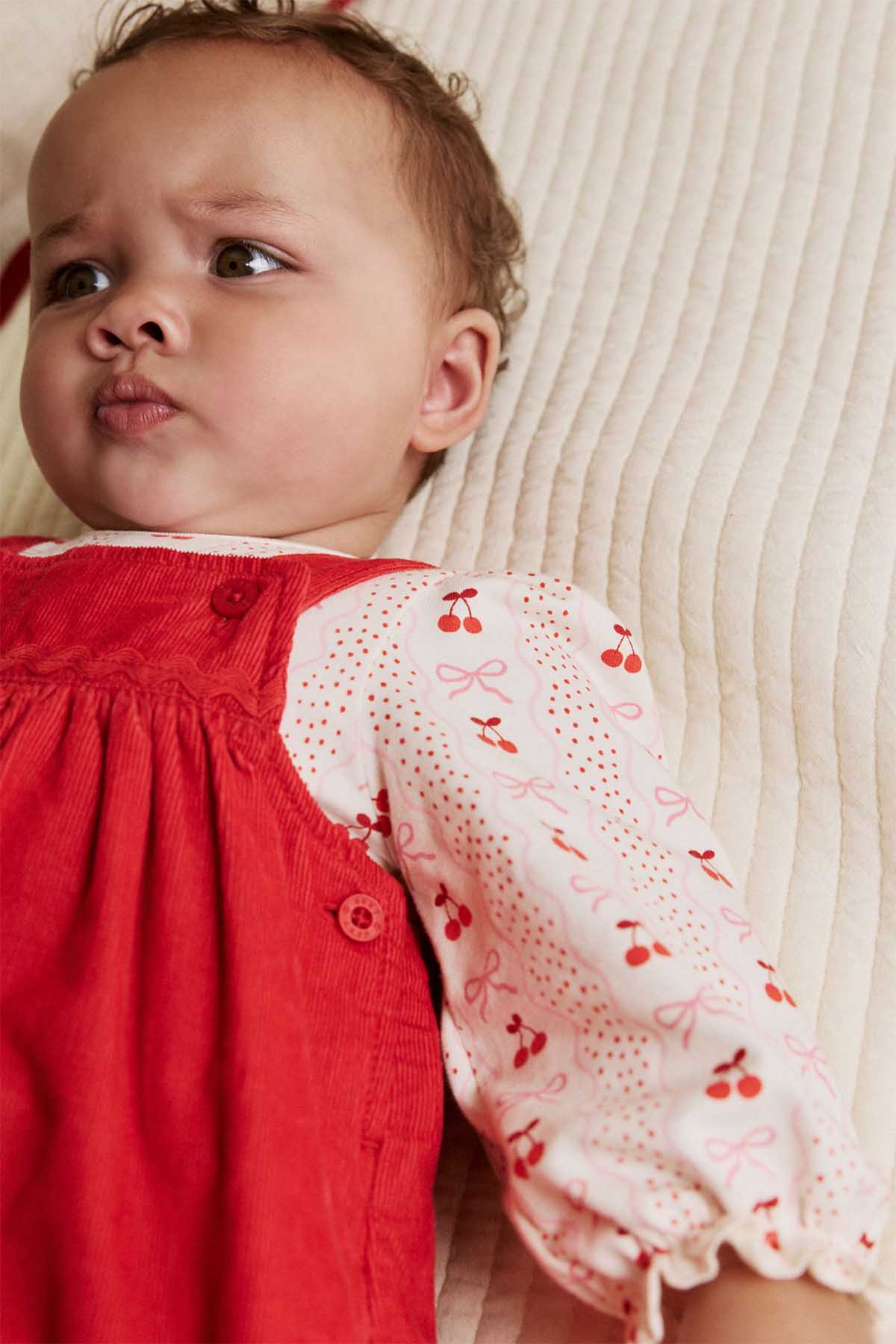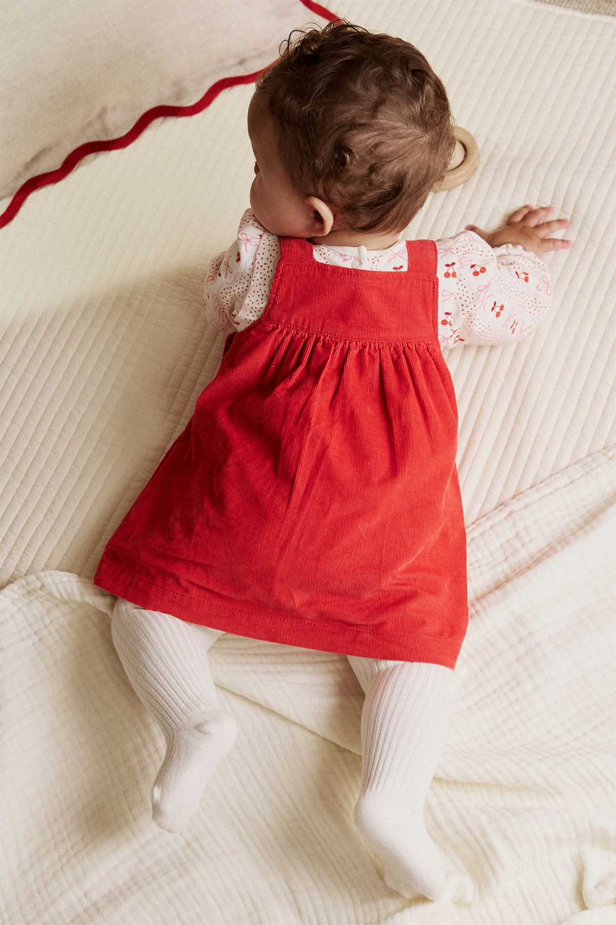 Red Bow Baby Cord Pinafore Long Sleeve Bodysuit & Tights Set 0mths-2yrs