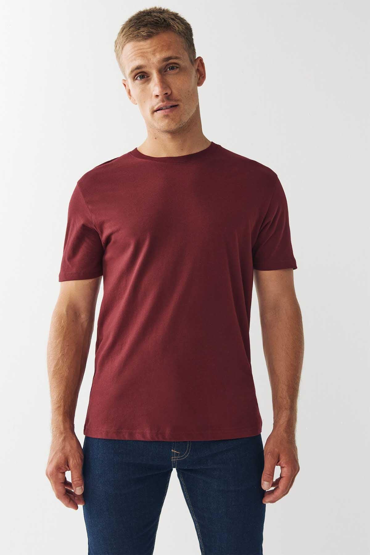 Red Burgundy Regular Fit Essential Crew Neck Cotton T-Shirt