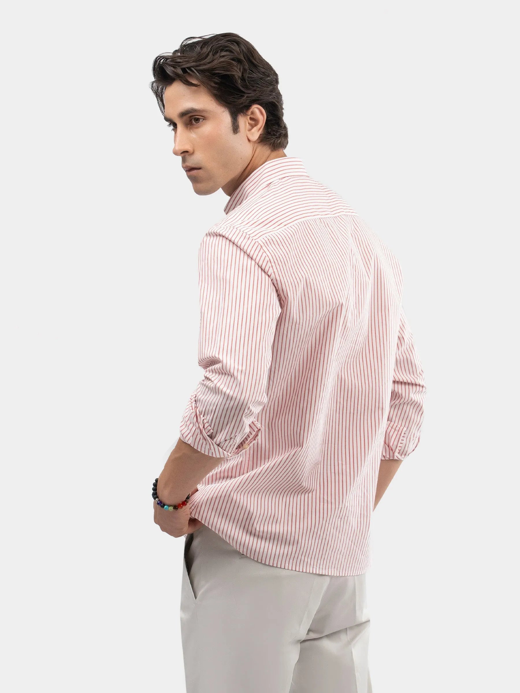 A sharp take on classic formal wear, this red & white striped shirt is crafted for a clean and polished look. Designed with a crisp collar and refined stripe pattern, it delivers all-day comfort with a smart, modern feel. Perfect for office wear or dressed-up occasions.