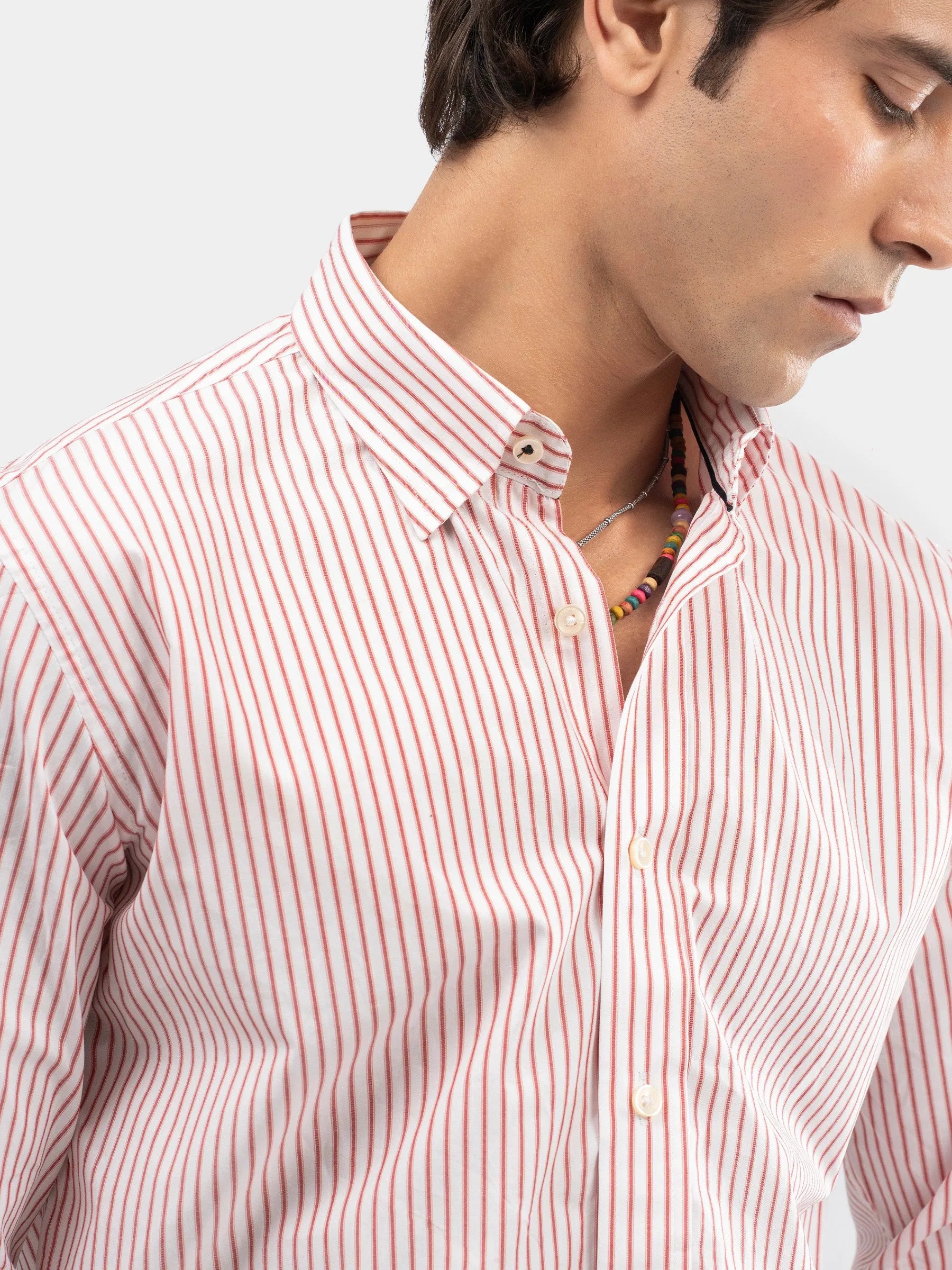 Red & White Striped Formal Shirt