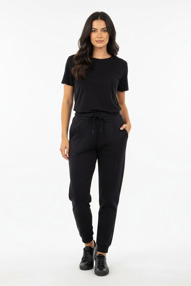 Designed for comfort and everyday wear, these black jogger pants feature a soft fabric, elasticated waistband, and adjustable drawstring. Perfect for lounging, travel, or casual athleisure styling.