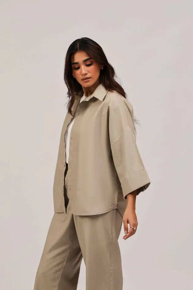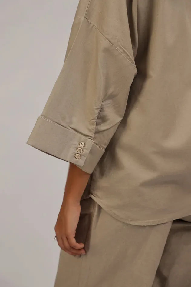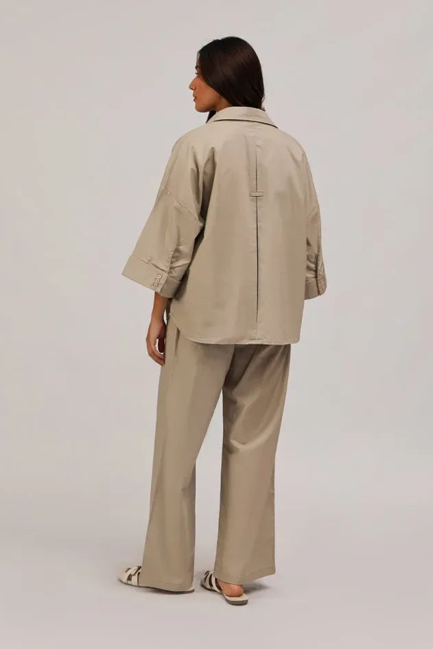 Your everyday answer to warm-weather ease; roomy, breathable, and softly structured in all the right places. With a dropped shoulder, sleeve details and boxy silhouette, it’s made to move with you.