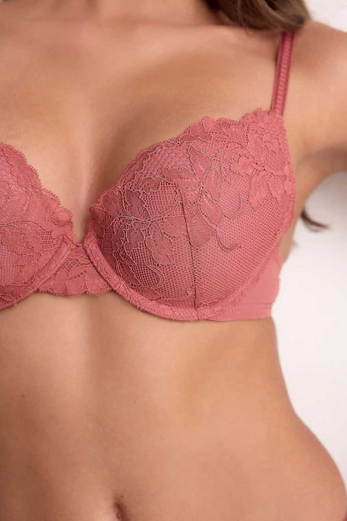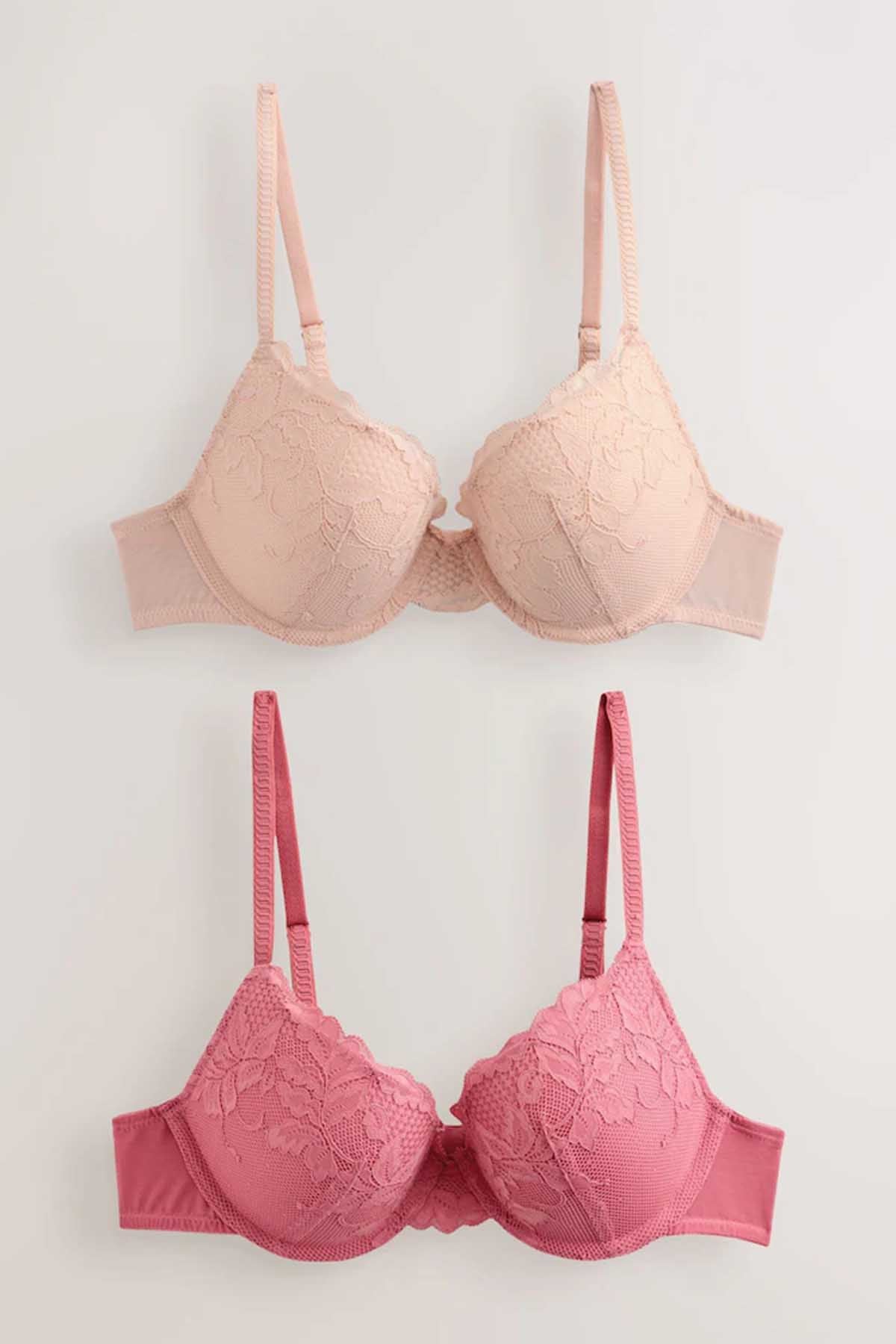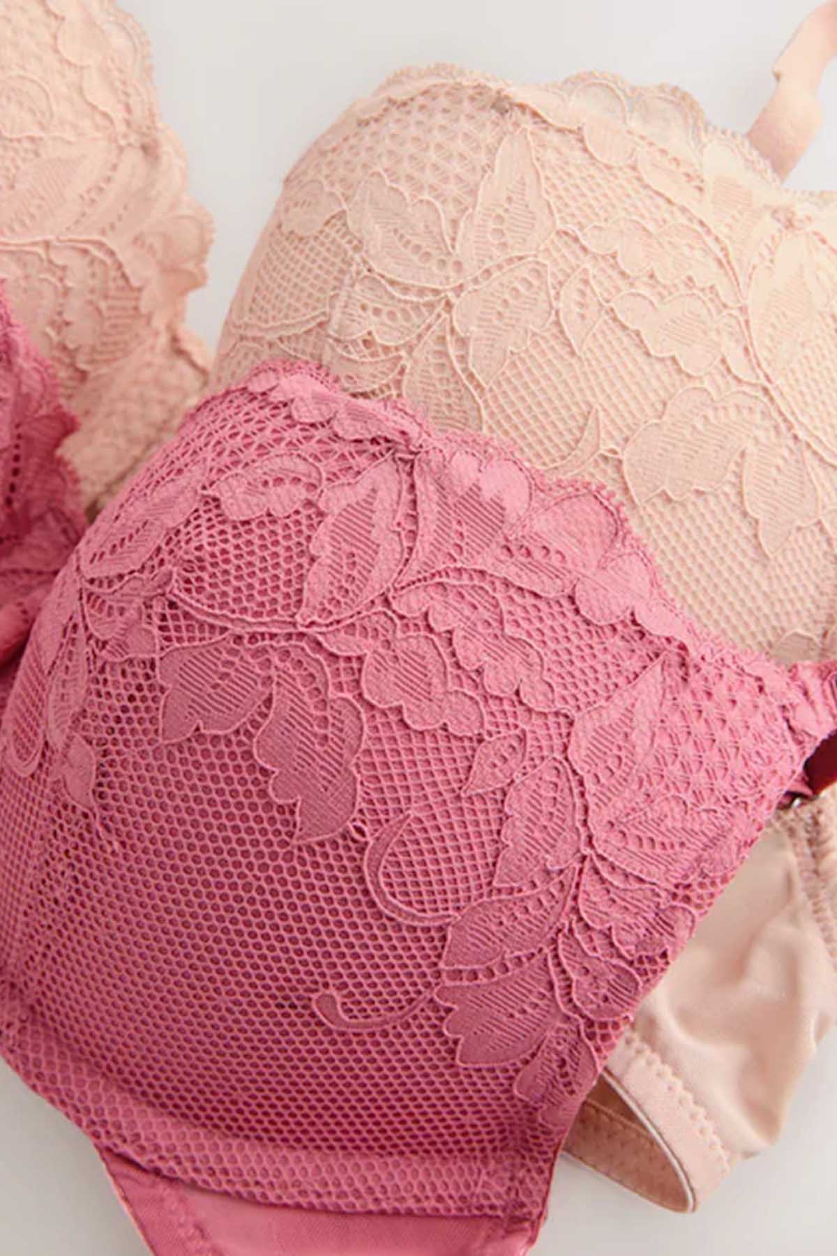 Rose/Light Pink Push Up Plunge Lace Bras 2 Pack