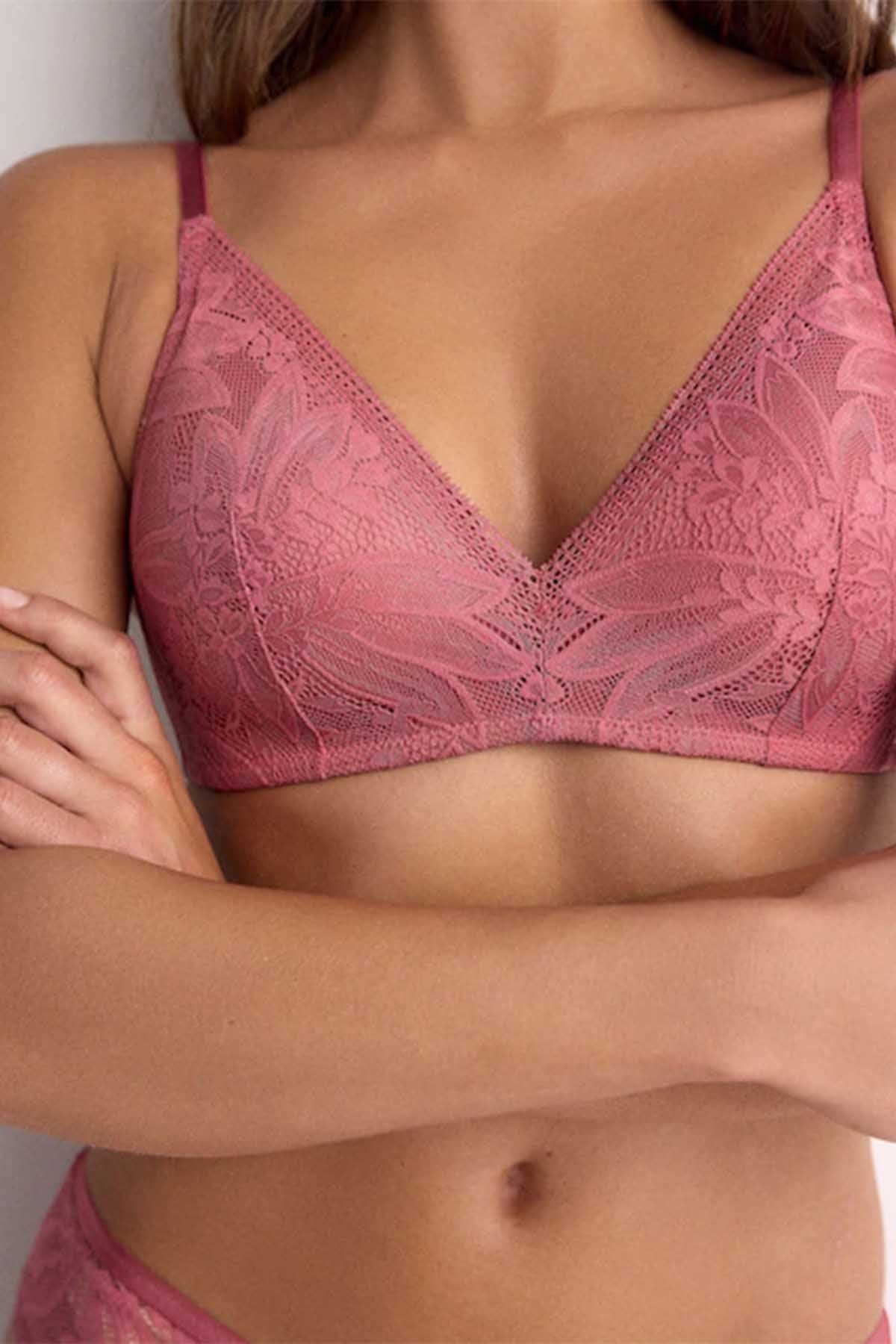 Rose/Pink Pad Non Wire Lace Detail Ultimate Comfort Bras 2 Pack