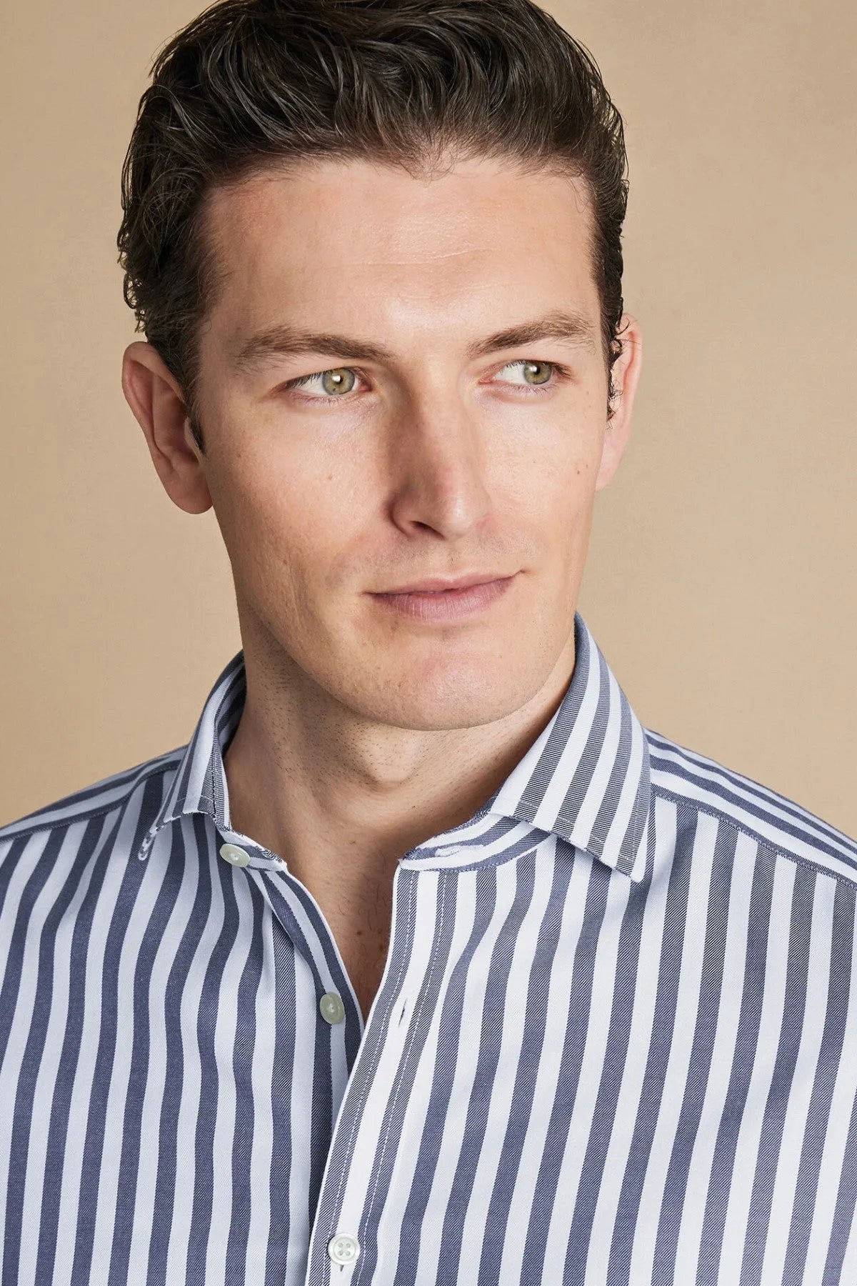 Royal Blue Wide Stripe Non-Iron Twill Cutaway Slim Fit Shirt