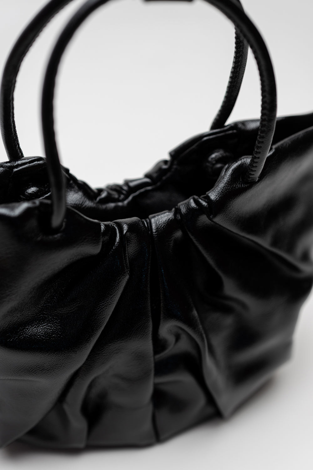This black gathered crossbody bag brings effortless volume with a smooth, glossy finish. The ruched detailing and rounded handle create a bold, sculptural look that instantly elevates any fit. Spacious, lightweight, and built for the everyday hustle — this bag moves with you.