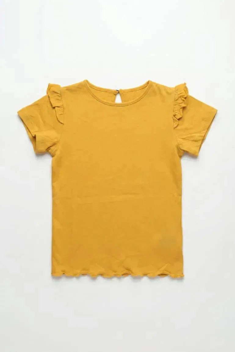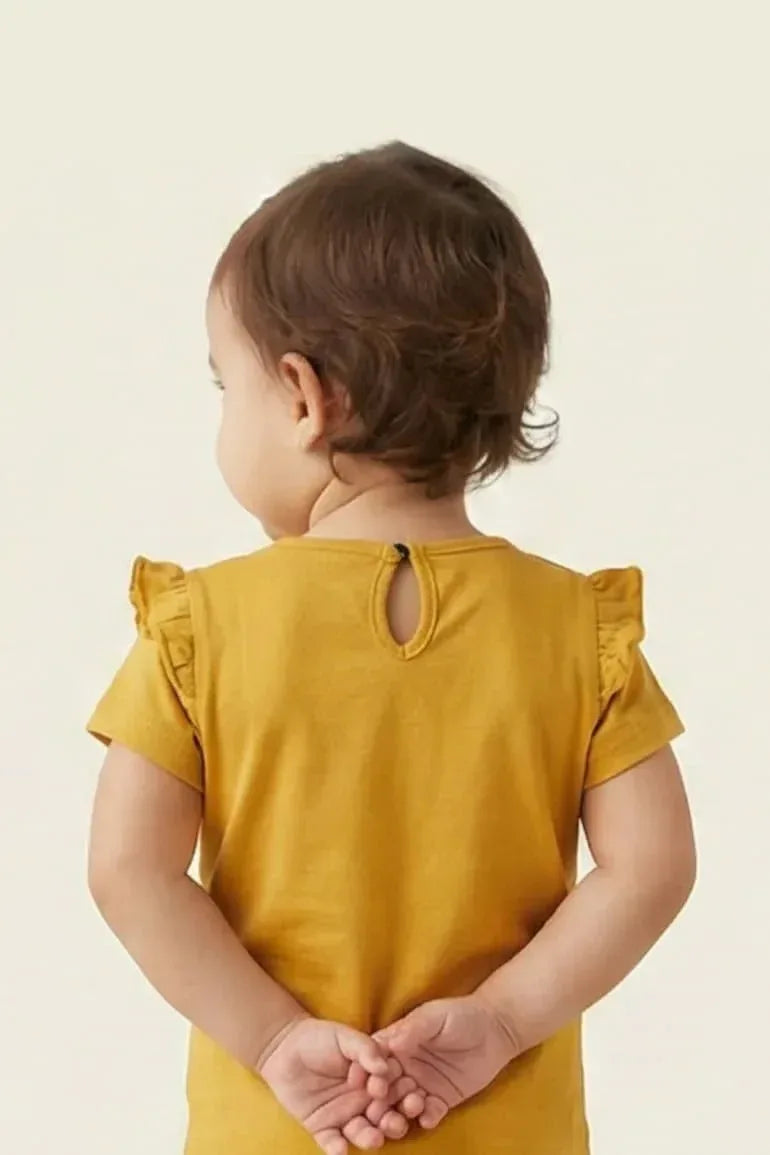 Ruffle Sleeve Tee For Baby Girl - Mustard