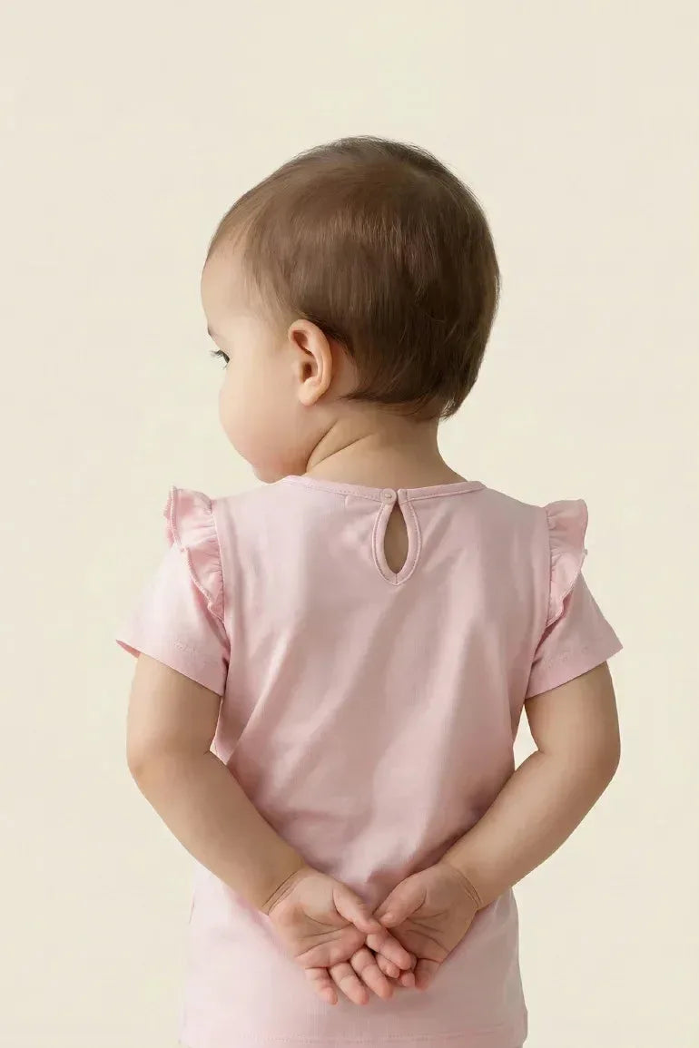 Ruffle Sleeve Tee For Baby Girl - Pink