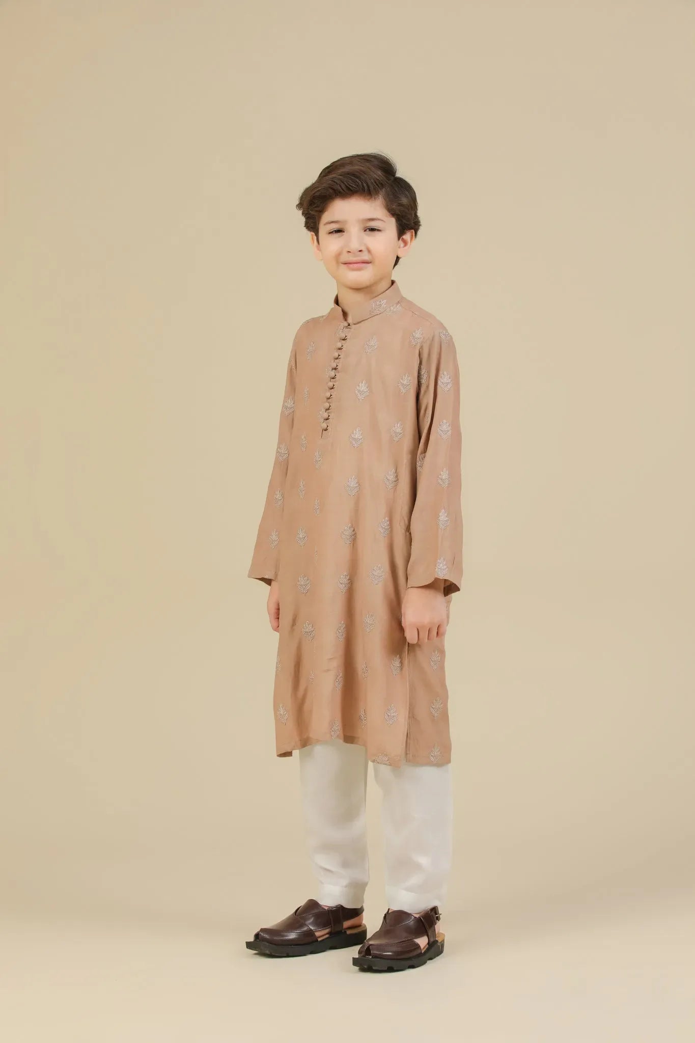Mehrab - Sandstone Raw Silk Embroidered Kurta Trouser - Kids