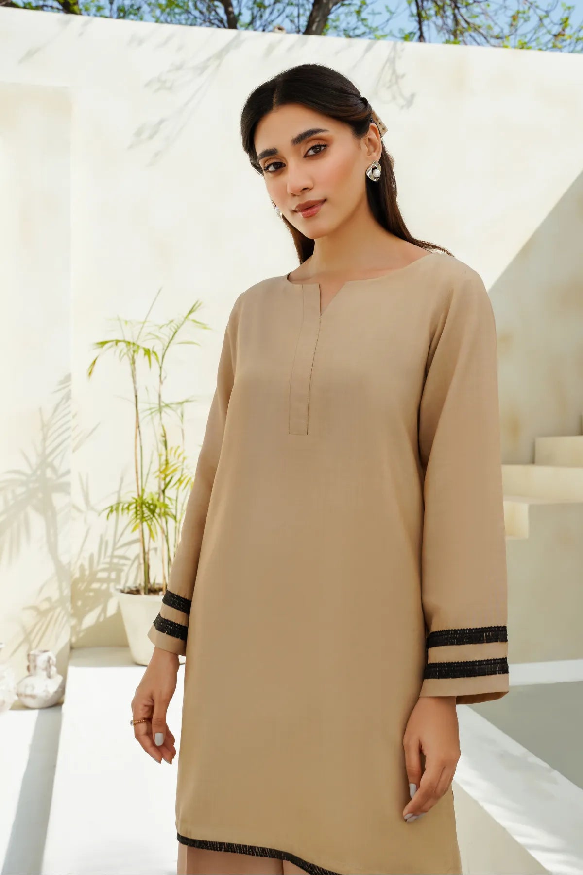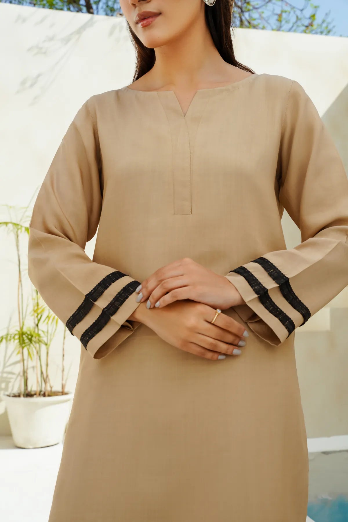Design:Straight-cut kurta with black lace detailing on the sleeves, shirt hem, and trouser edges