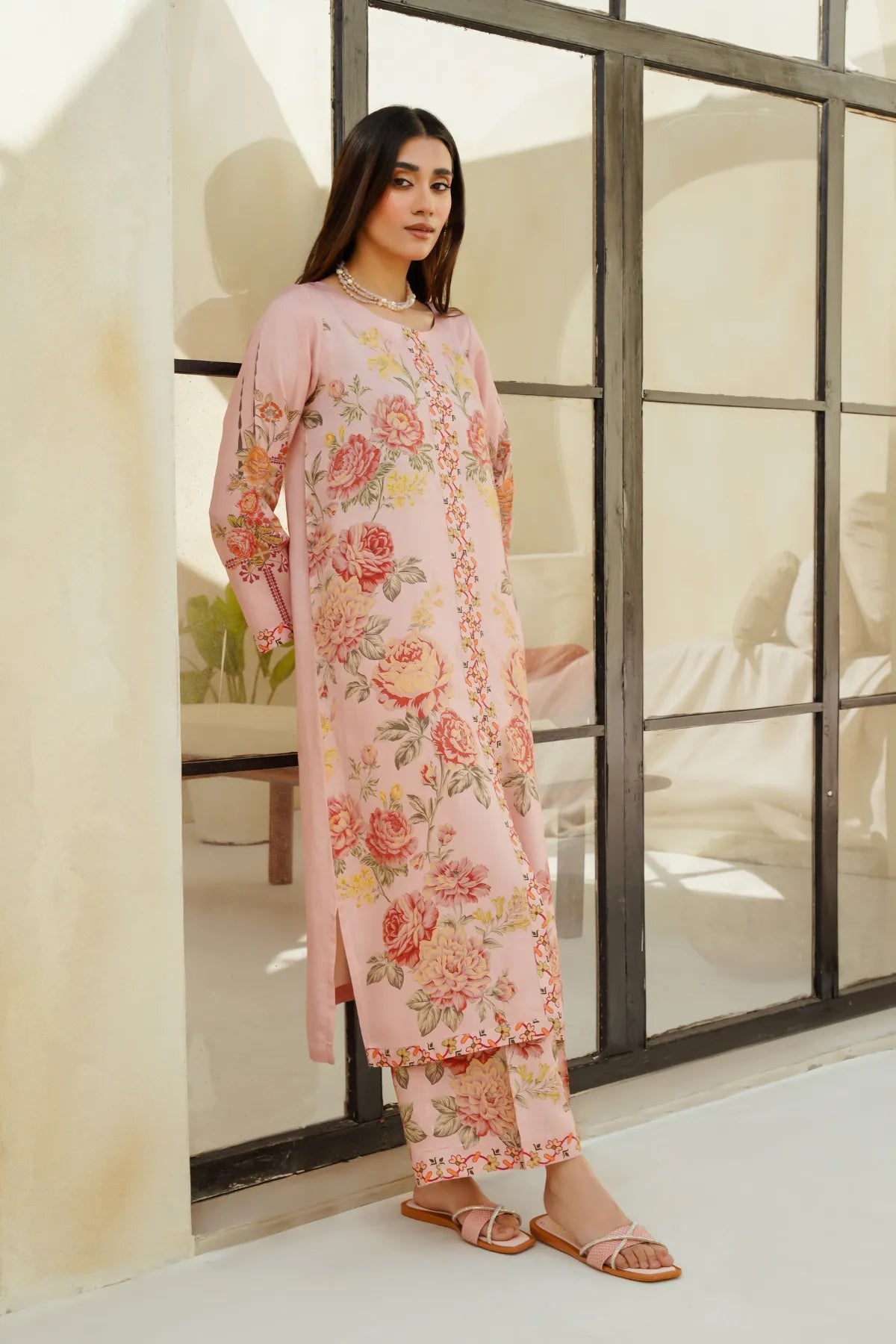 Design: Long shirt in a soft pink base, highlighted with vibrant florals and border detailingÂÂ