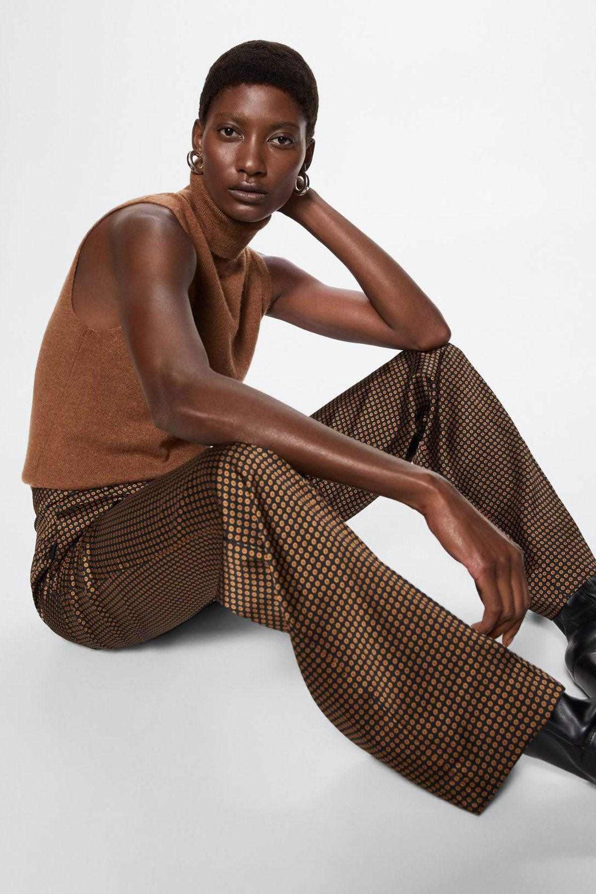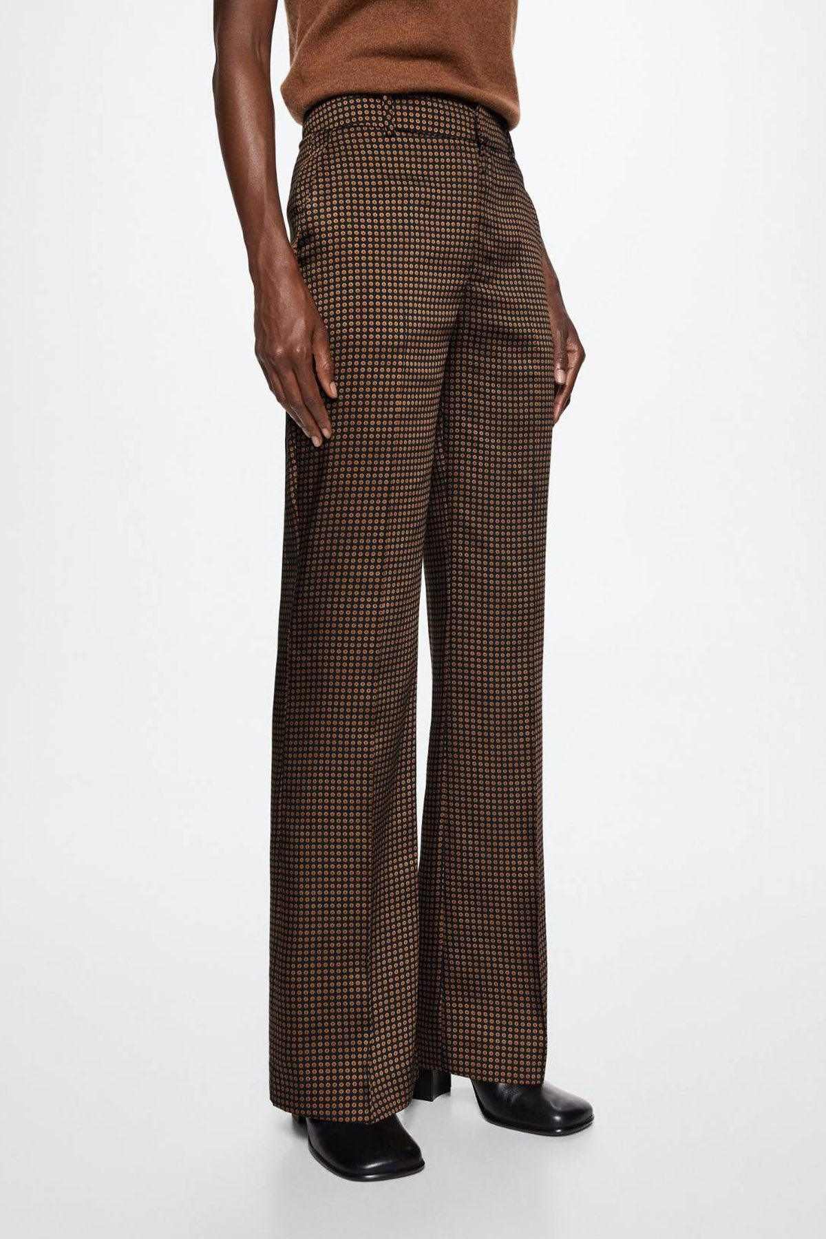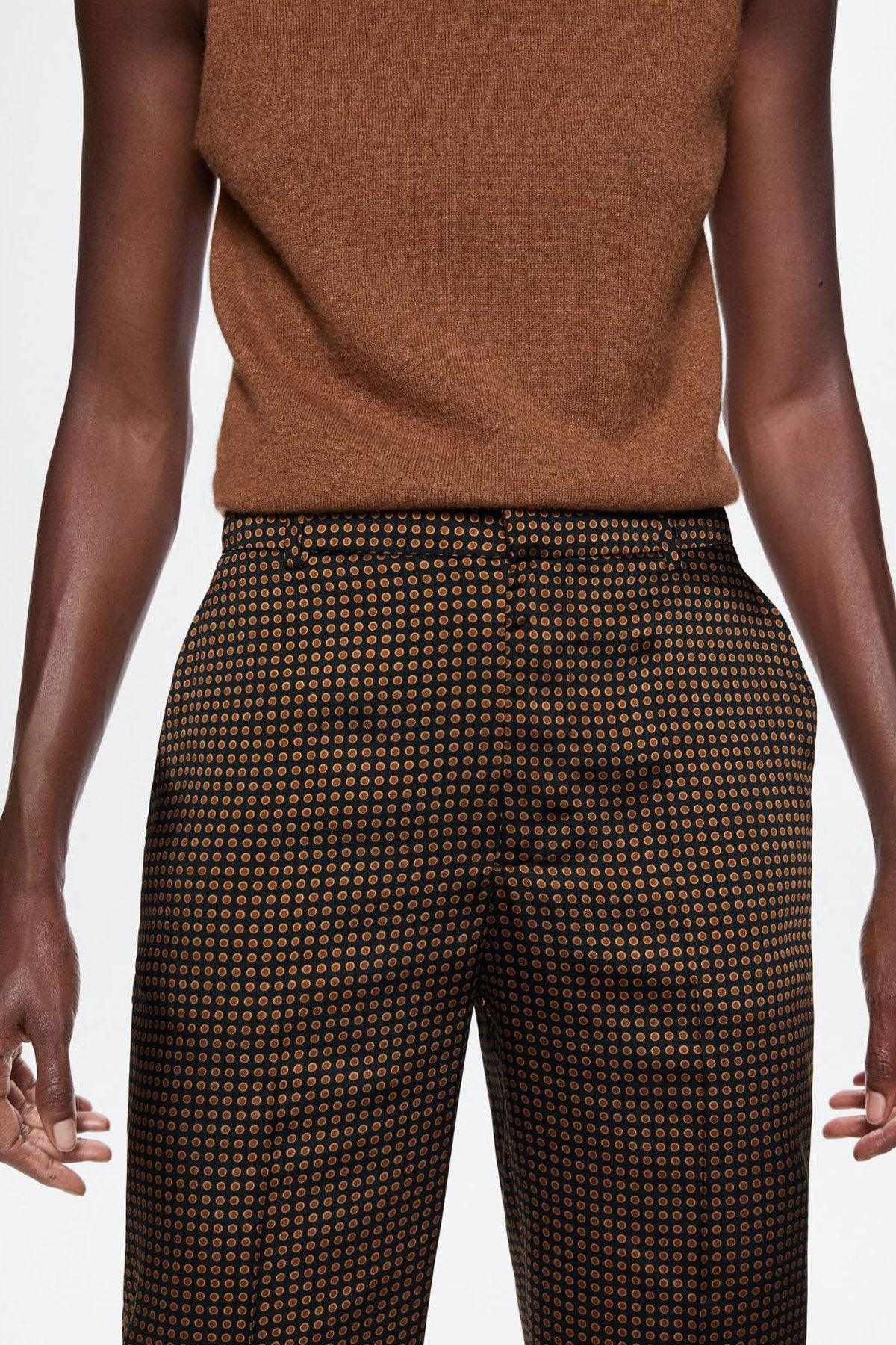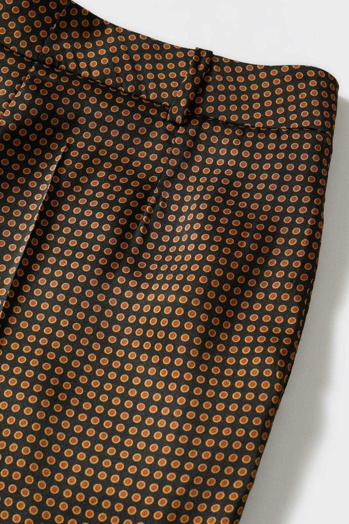 Satin. Flowy fabric. Polka-dot print. Flared design. Long design. Medium waist. Concealed button, hook and zip fastening. Loops. Two side pockets. Co-ord.