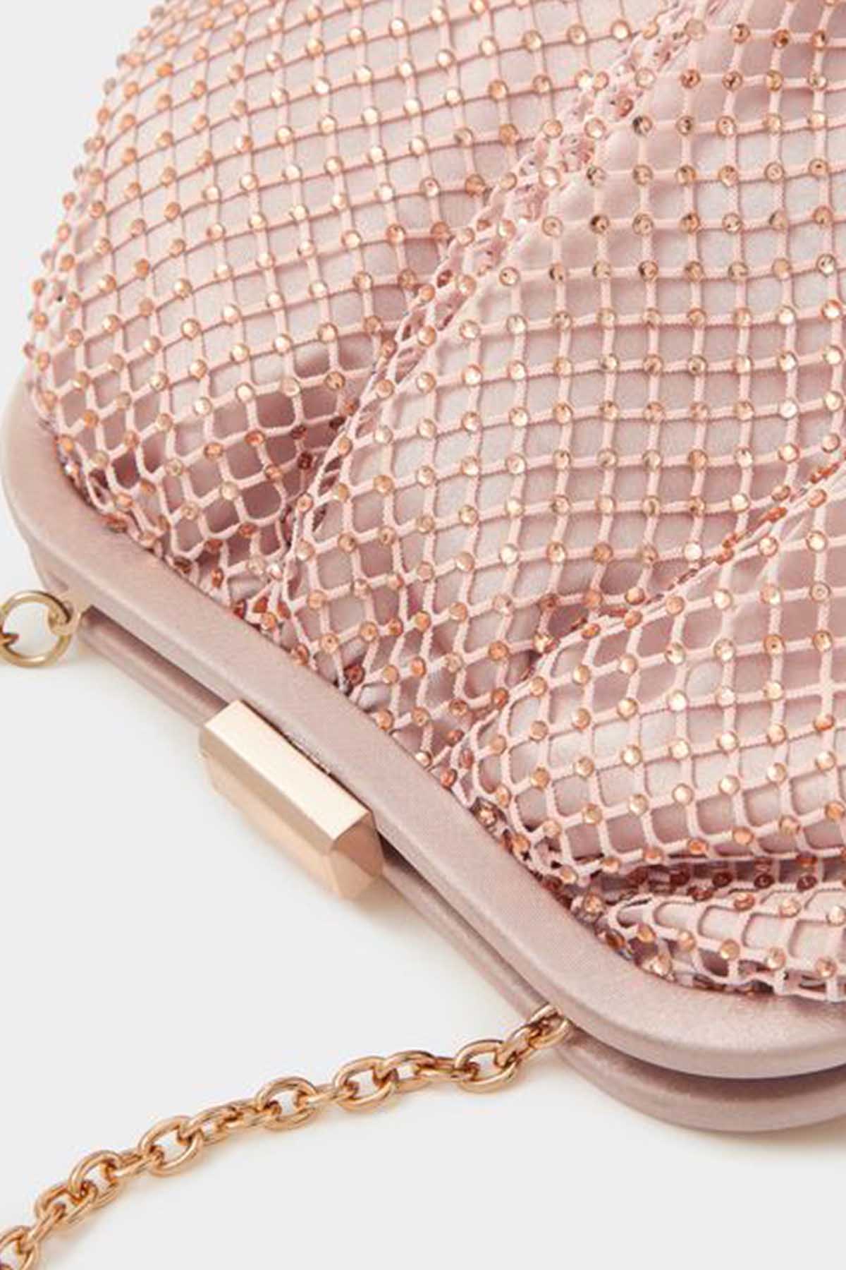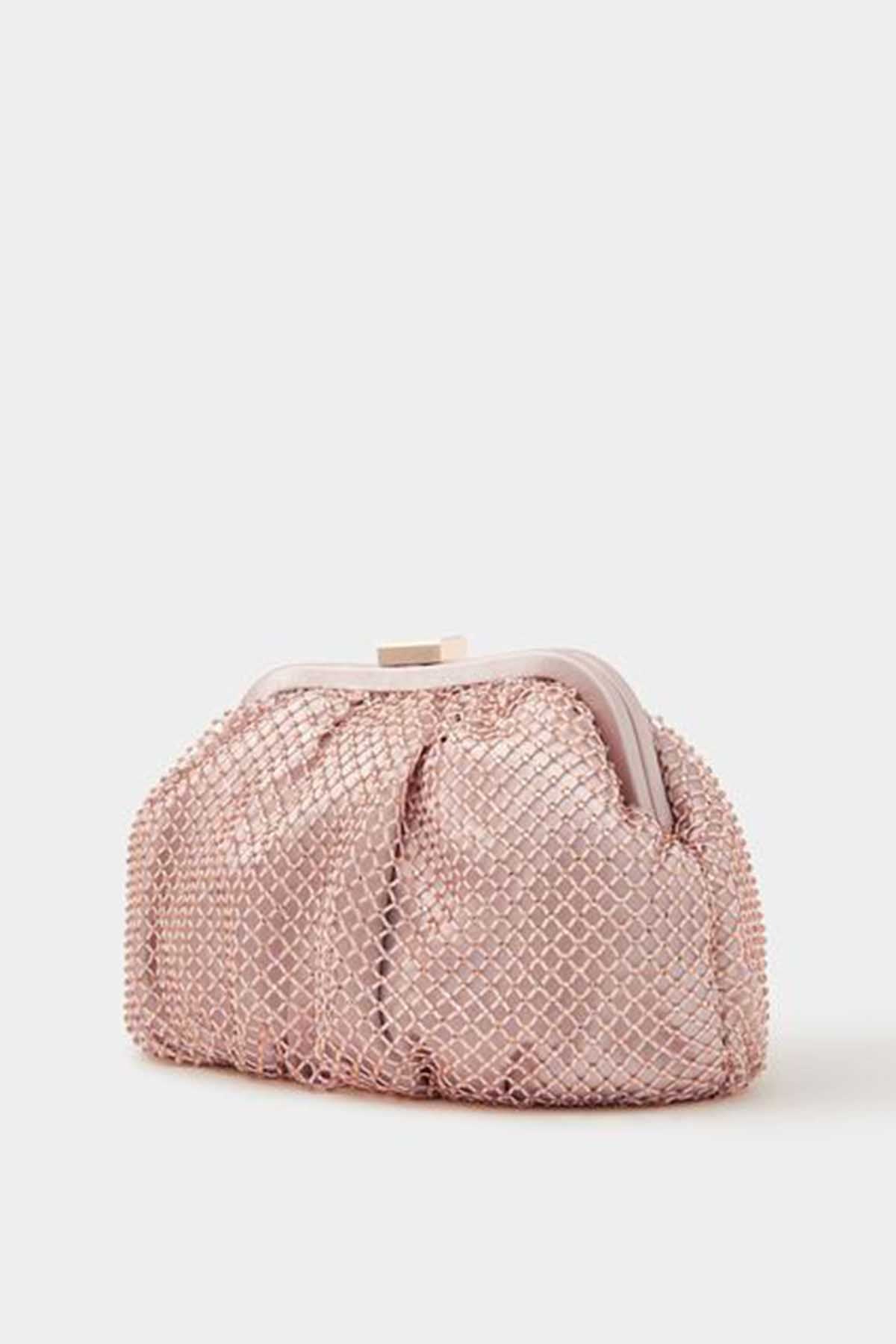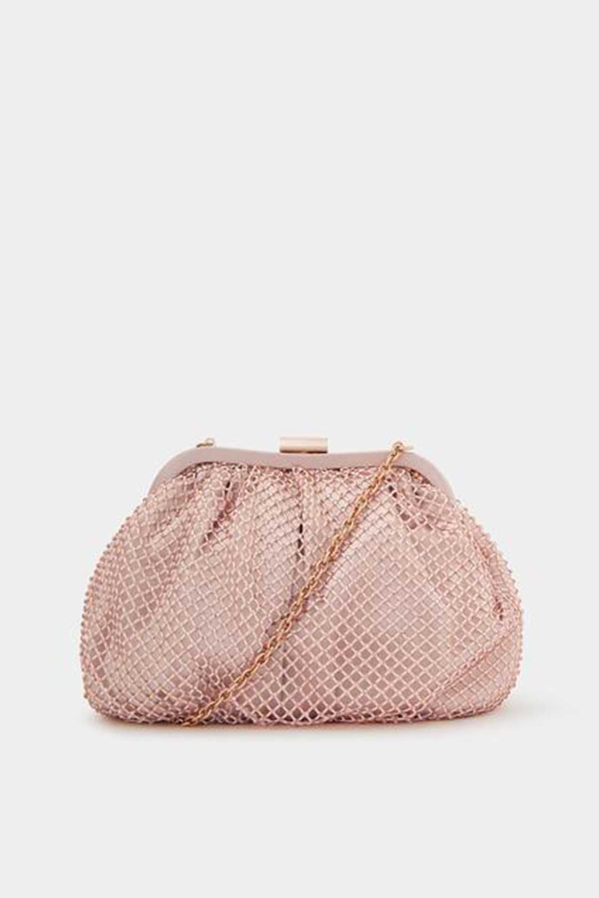 Sequin Clip Frame Clutch Pink