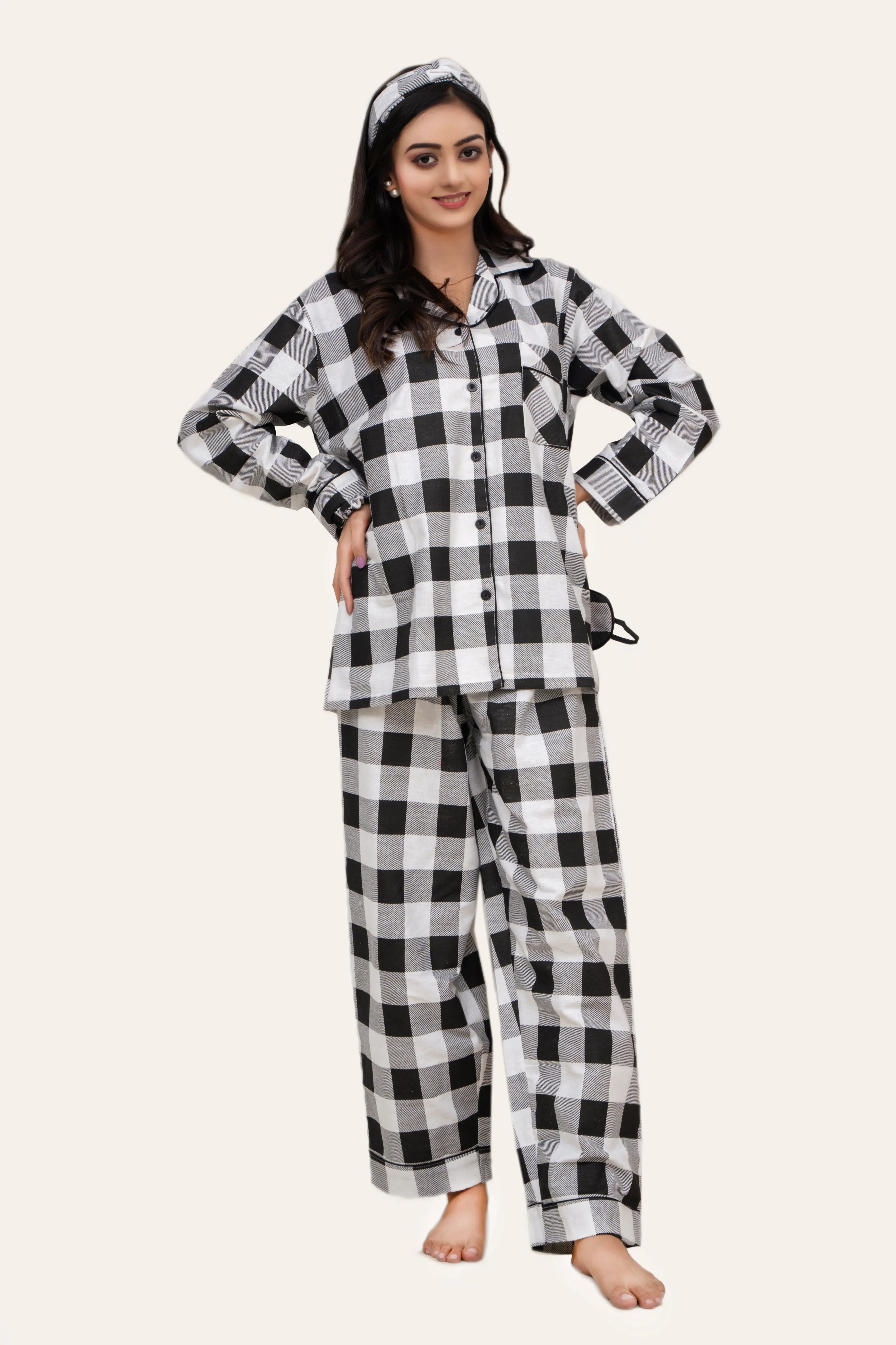 Wearing warm Women Loght Weight 100% Cotton Both Side Brush Super Soft Flannel Pajama SetÂ