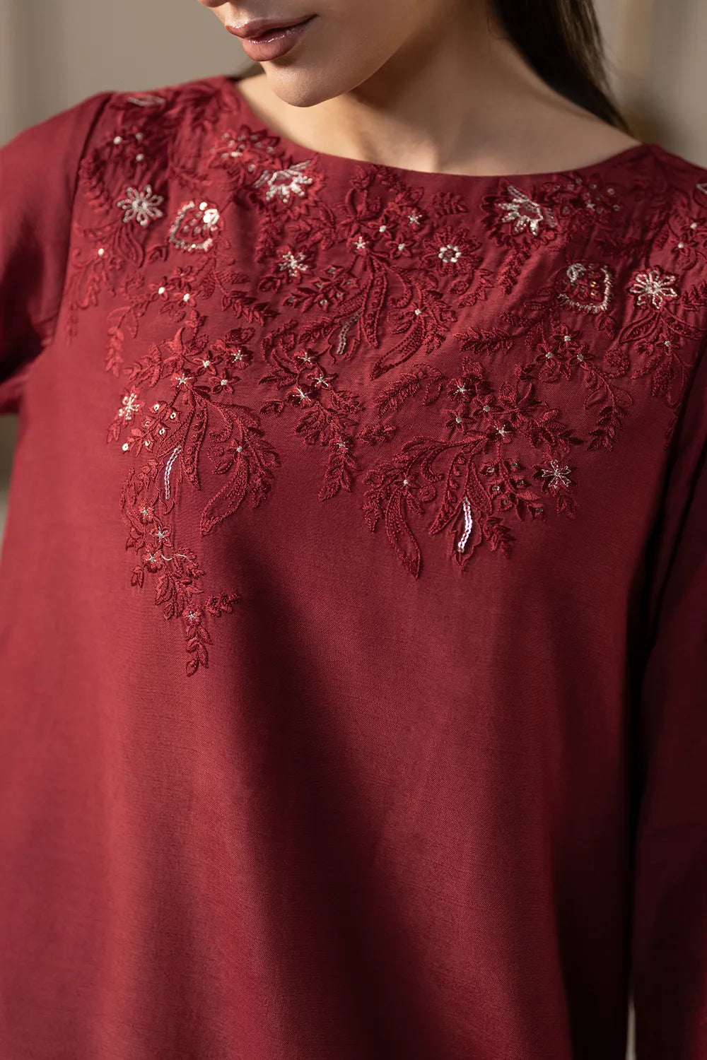 Silk Crimson | Embroidered Raw Silk