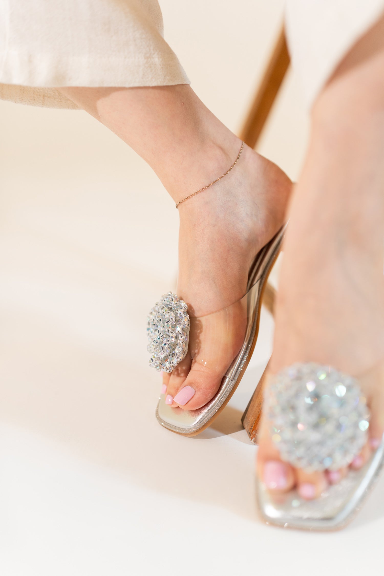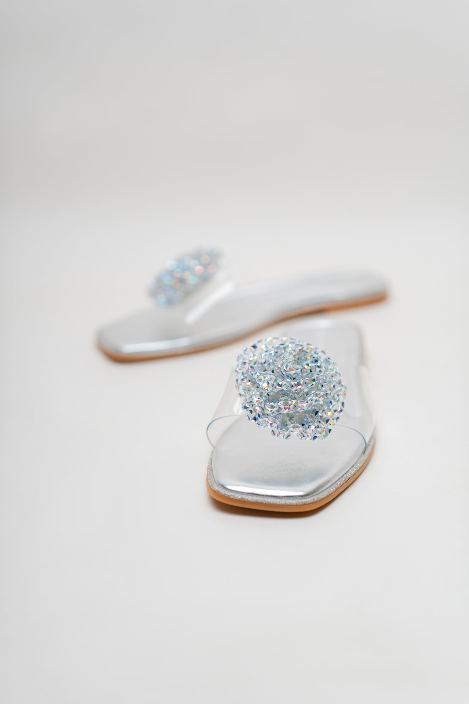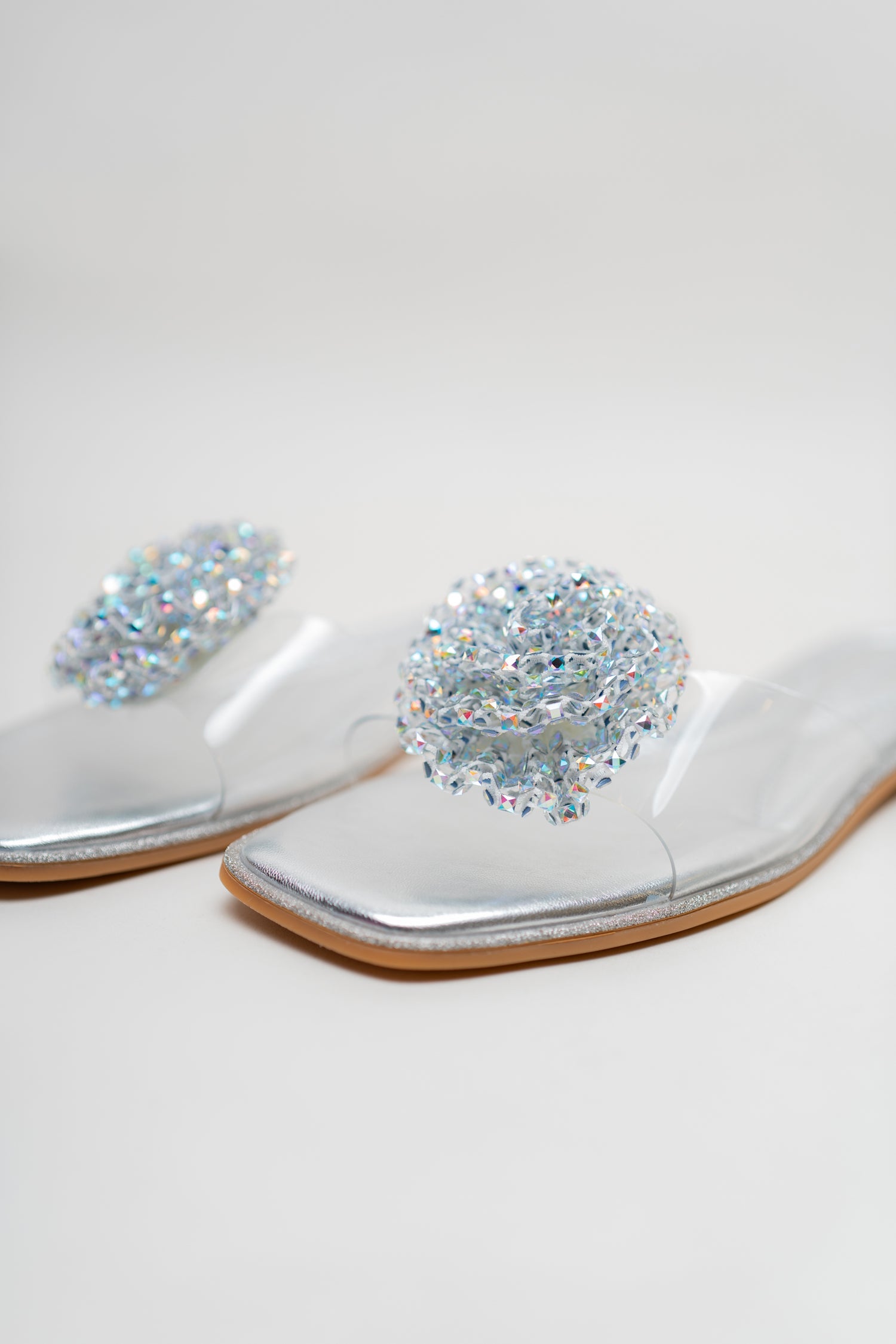 Silver Floral Rhinstones Slides