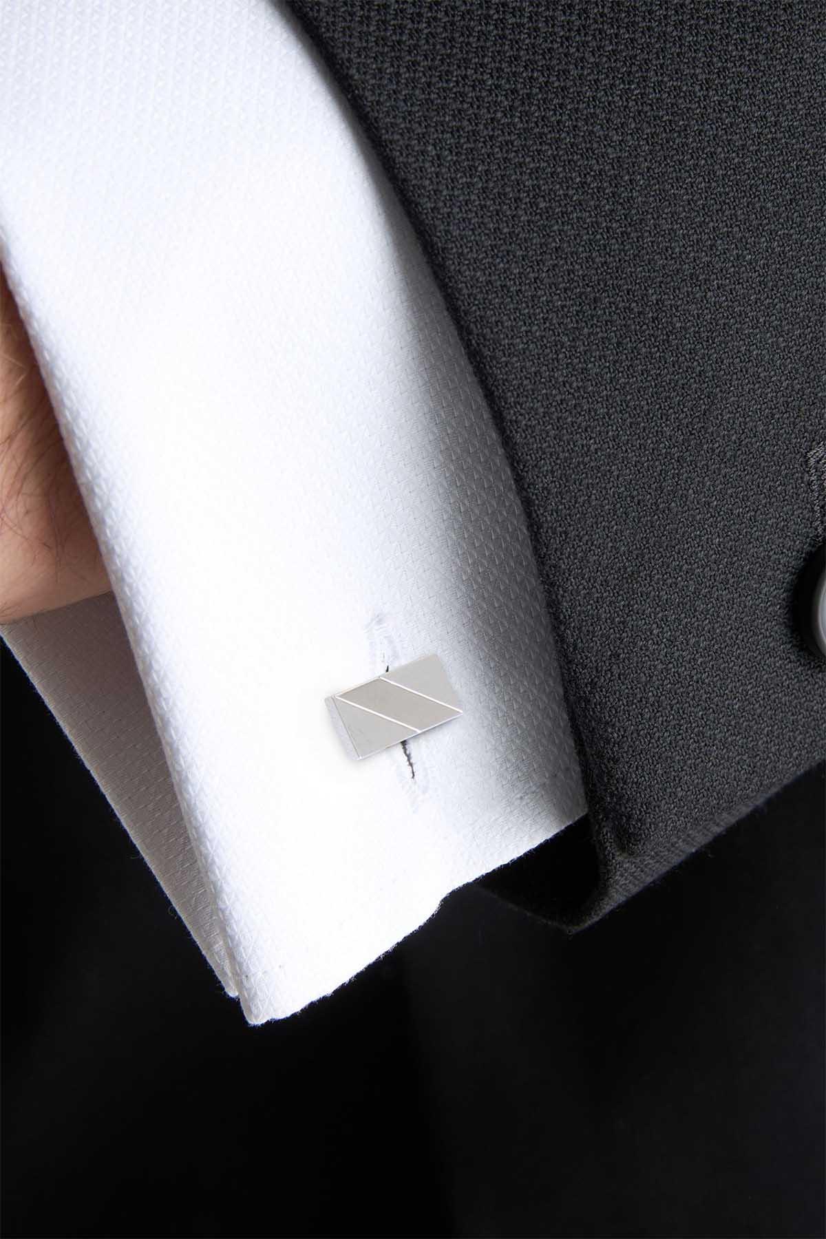 Silver Tone Cufflinks And Tie Clip Set