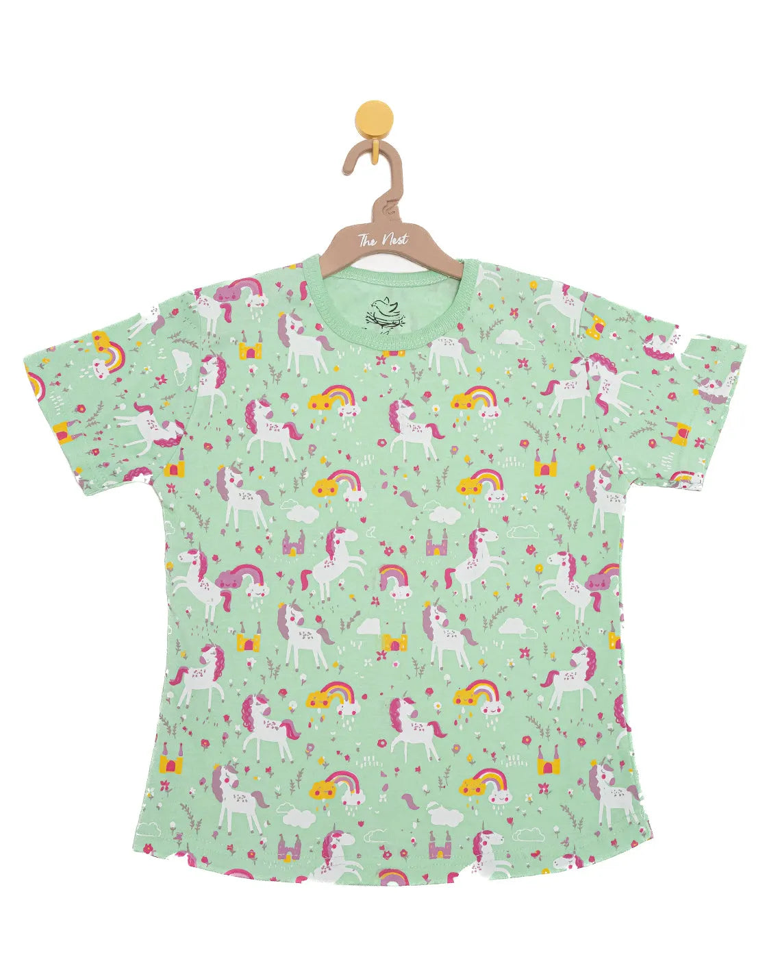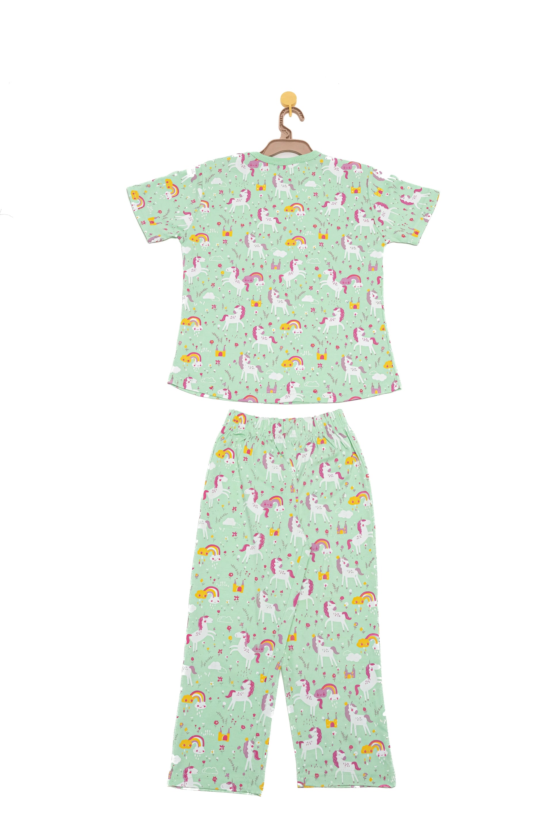 Generic Night Suit (Crew Neck) - S/Sleeve - 45s PC Interlock - Green Ash - UniCorn Print