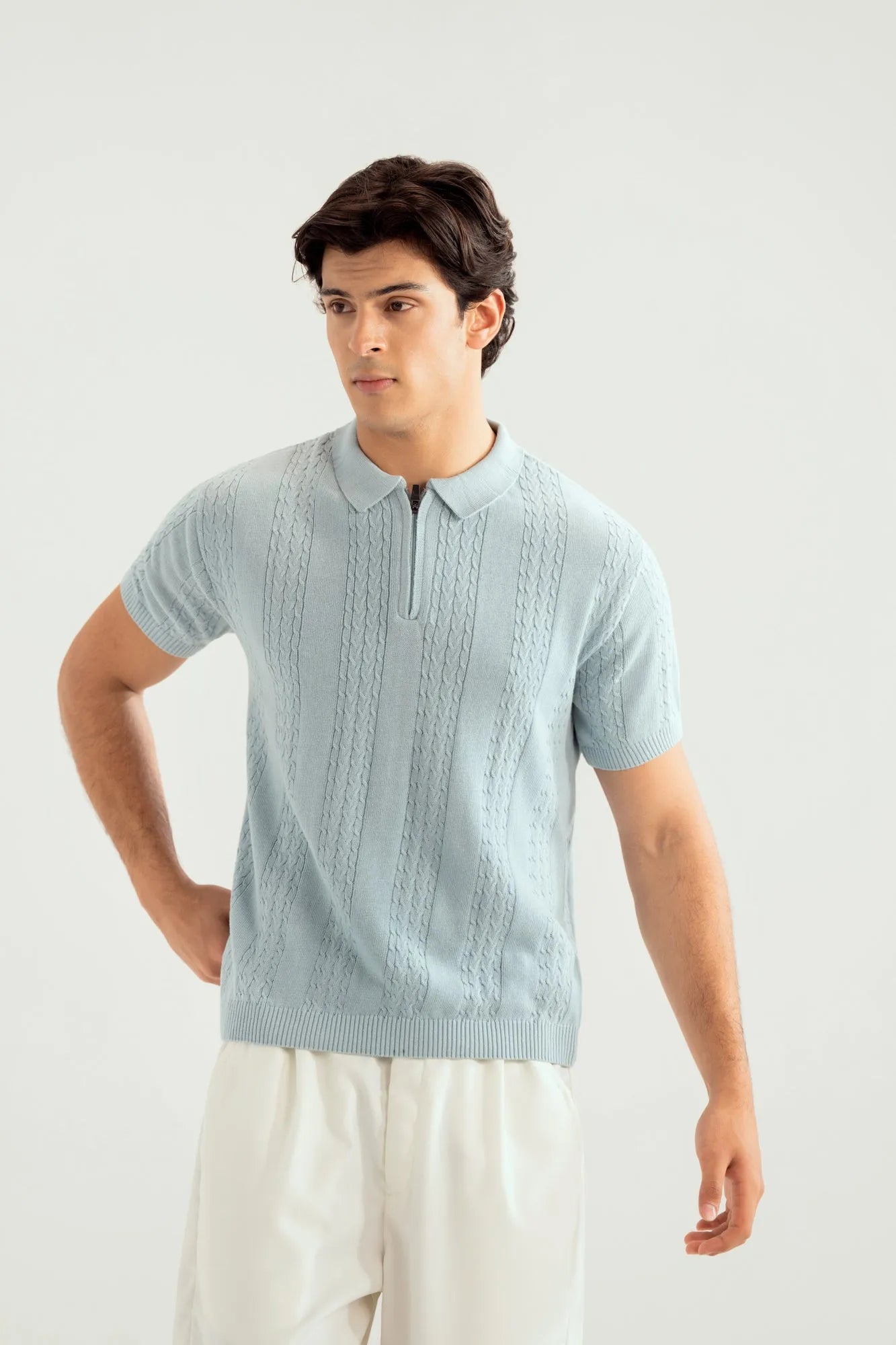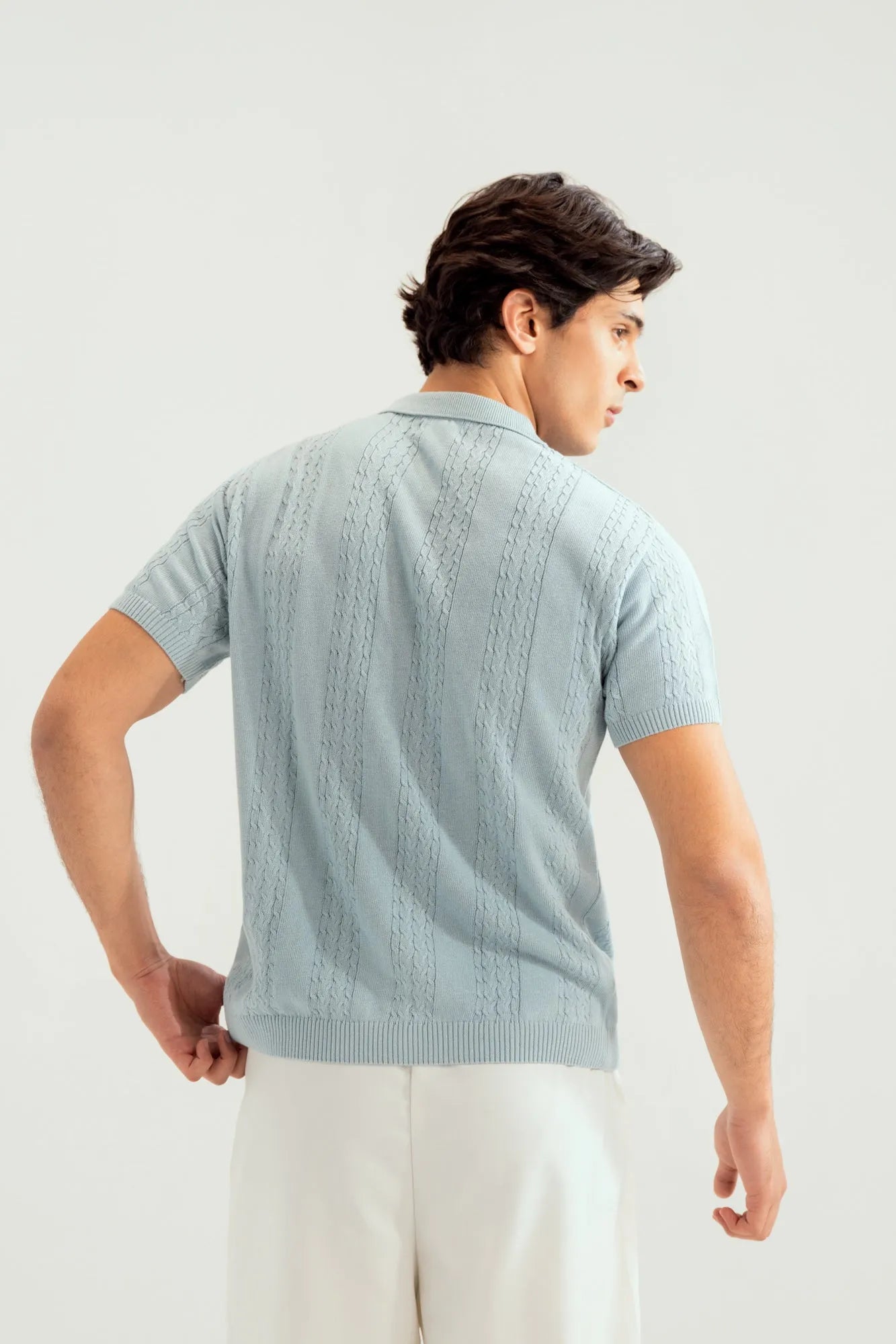 Sky Blue Crocheted Knitted Polo - Men