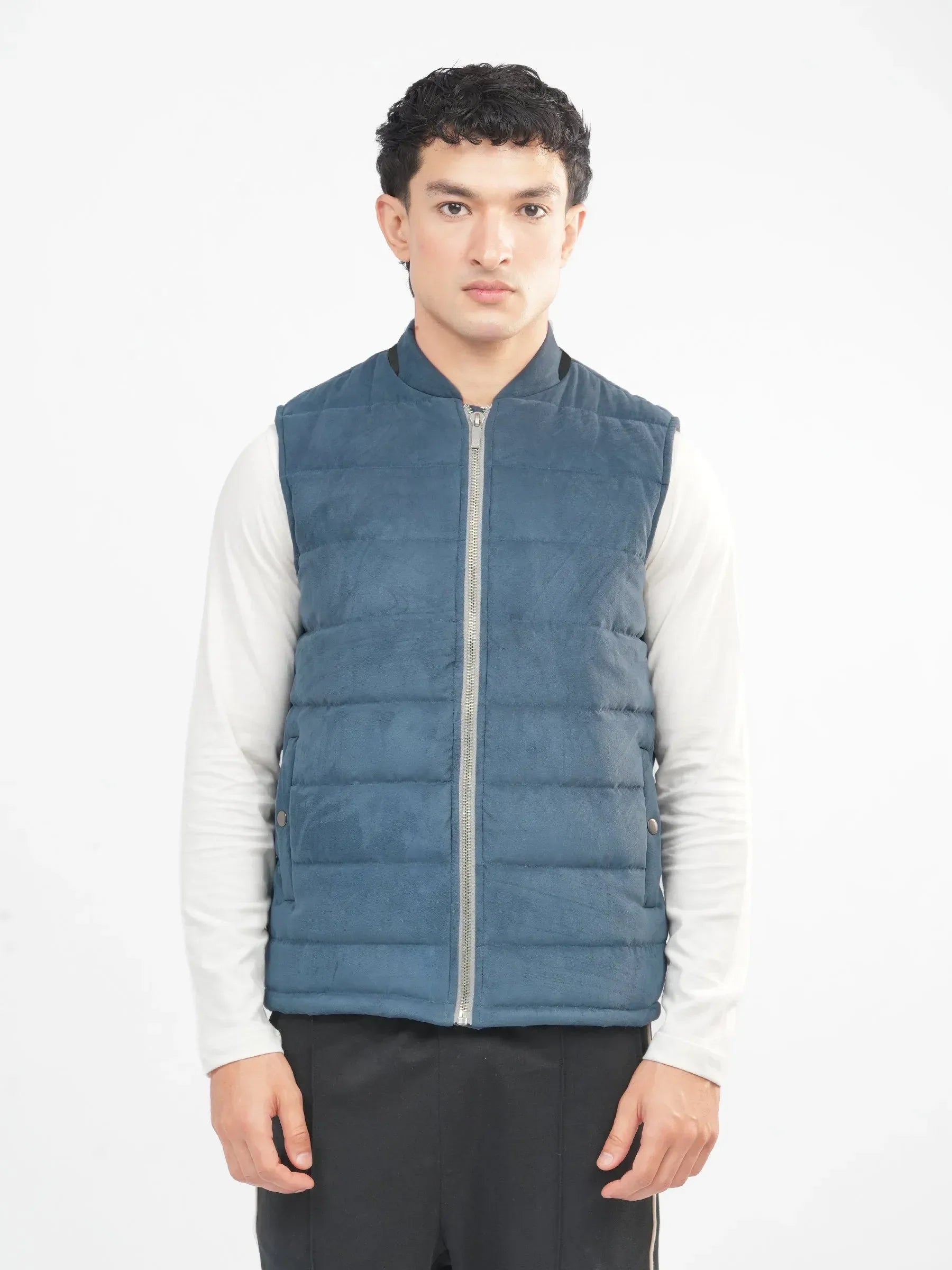 A refined sleeveless layering piece with an old-money look. Crafted in soft-touch faux suede with a clean, structured fit, it adds instant depth over shirts or shalwar kameez. Finished in a rich slate-blue tone for effortless smart-casual styling. This quilted sleeveless gilet is a must-have this season