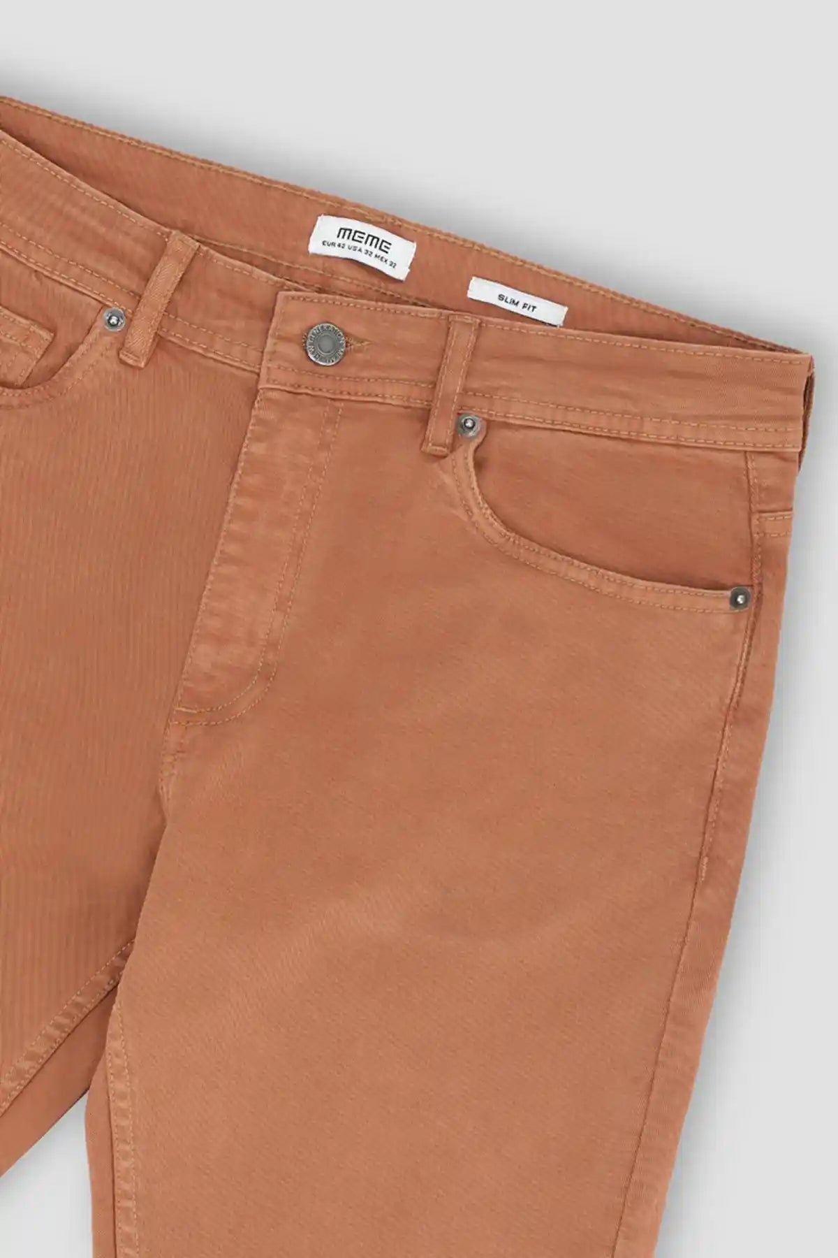 98% Cotton &Amp; 2% Elastane. Neutral Chic Slim Fit Cotton Denim Pants With Regular Waistband Featuring Button And Loops. Front Slash Pockets And Coin Pocket. Rear Yoke And Patch Pockets. Straight Hem