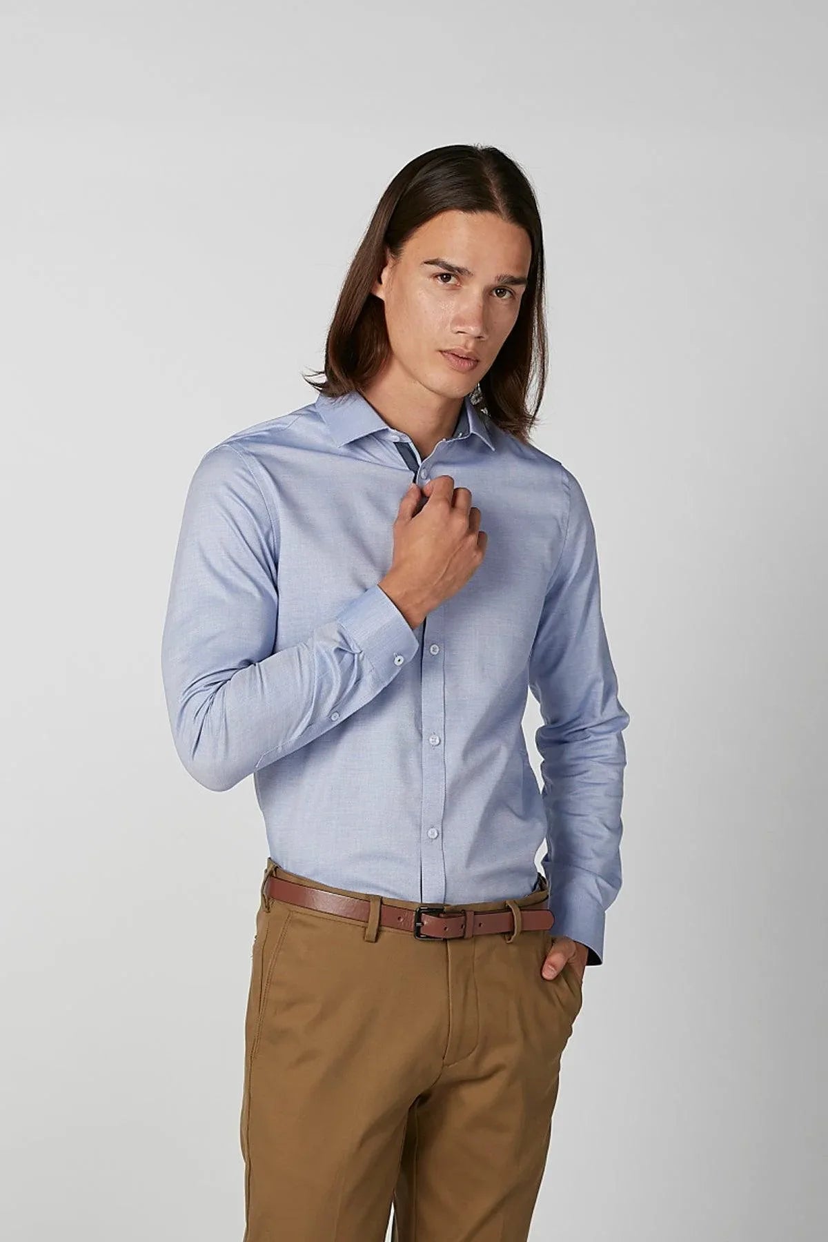 Slim Fit Plain Formal Shirt with Long Sleeves and Spread Collar