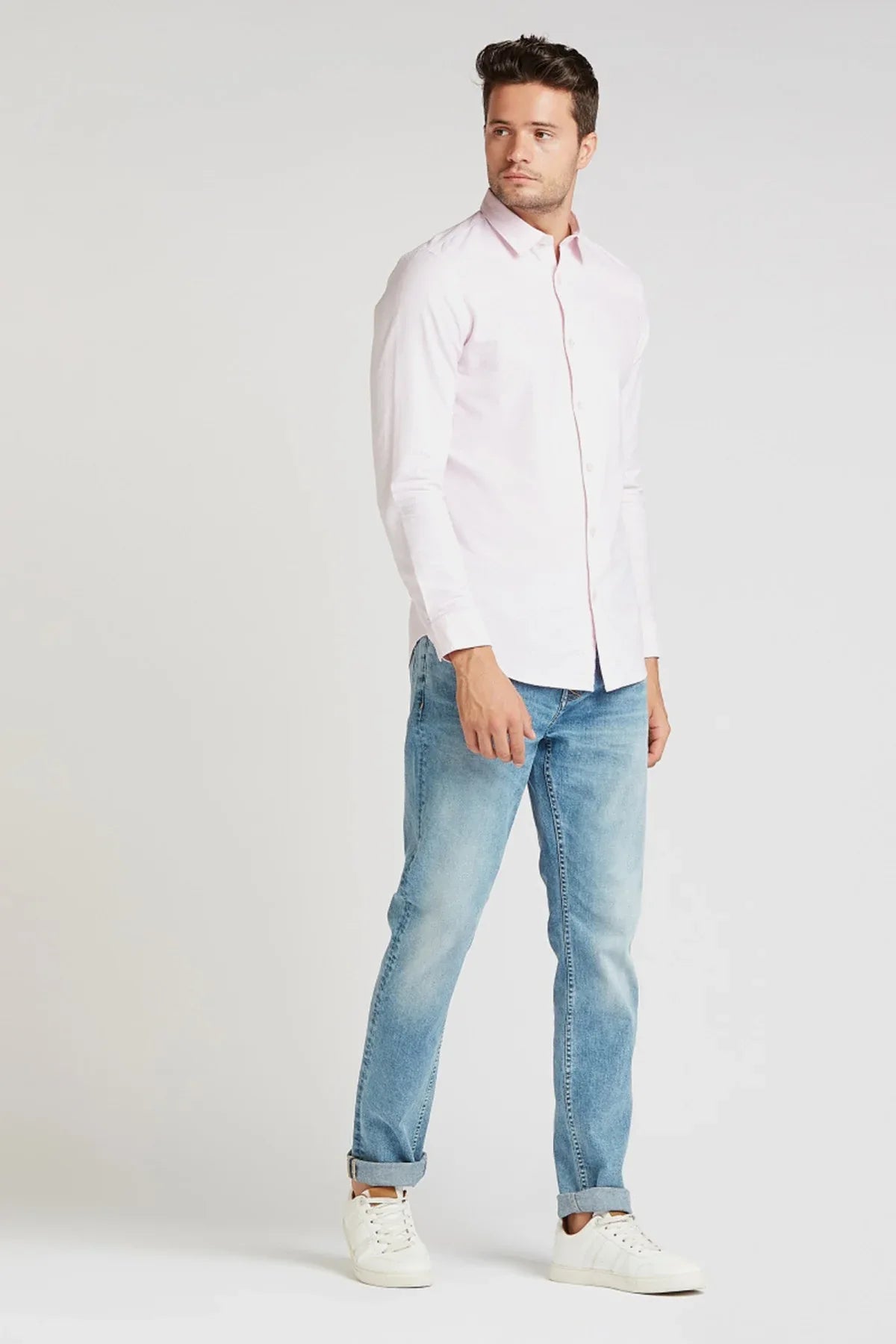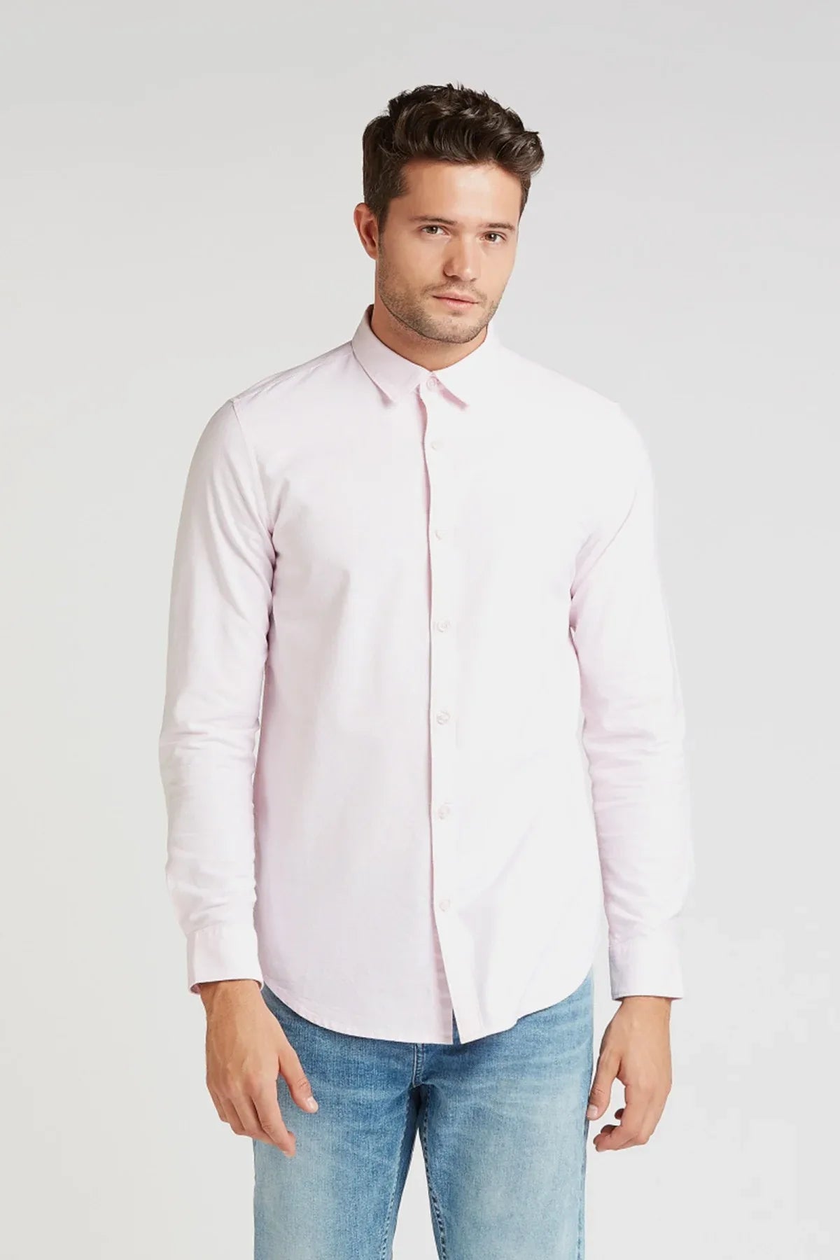 Slim Fit Solid Shirt with Long Sleeves and Spread Collar