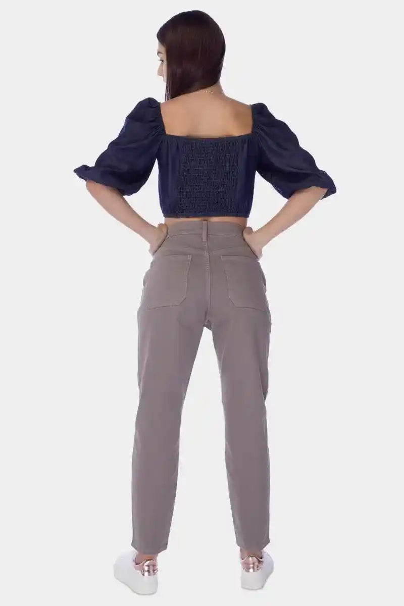 98% Cotton 2% Elastane Straight Fit Colored Denim With Regular Waist Band. Centre Front Button And Loops. Front Mechanic Pockets. Seam Details. Back Yoke And Patch Pockets. Straight Hem