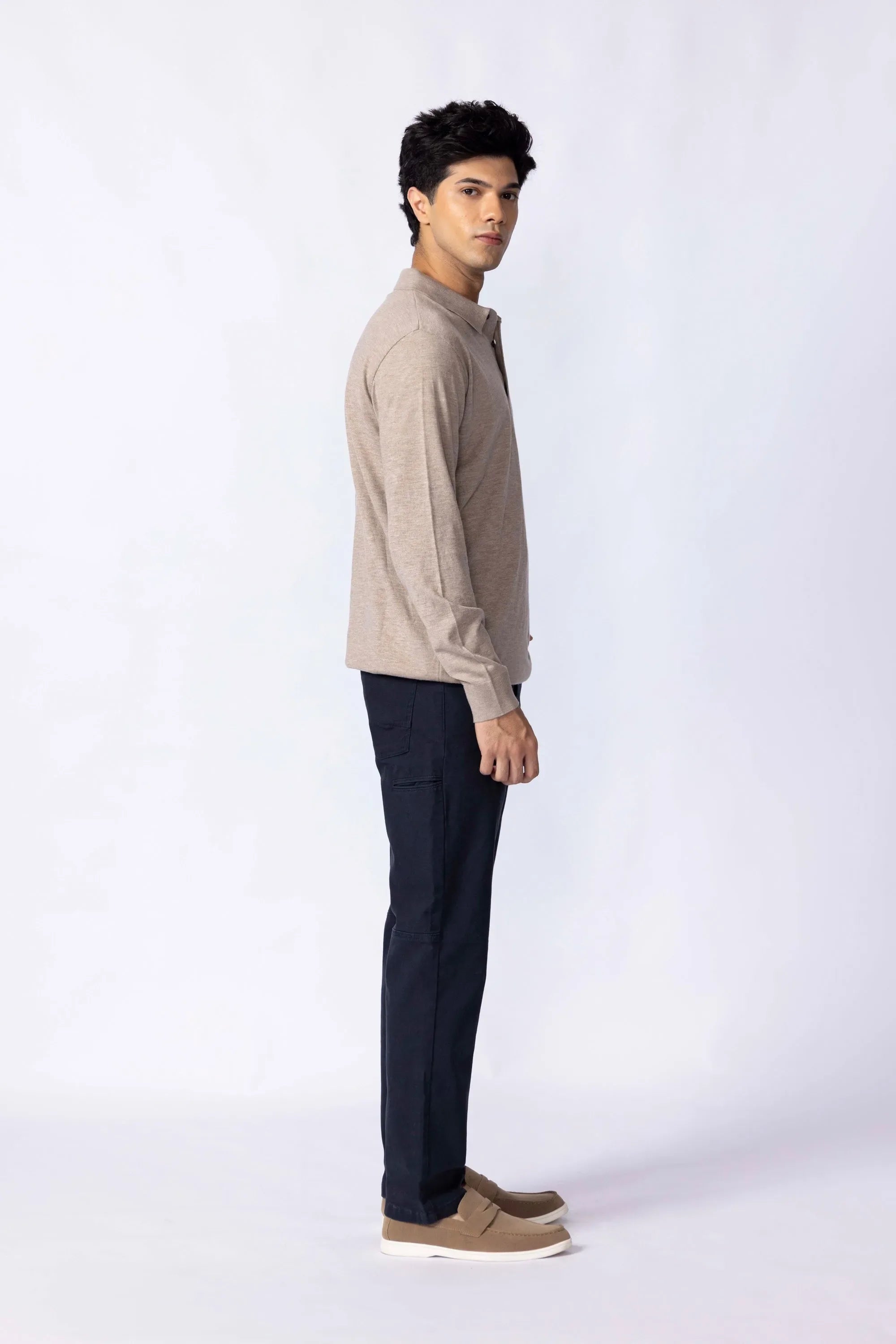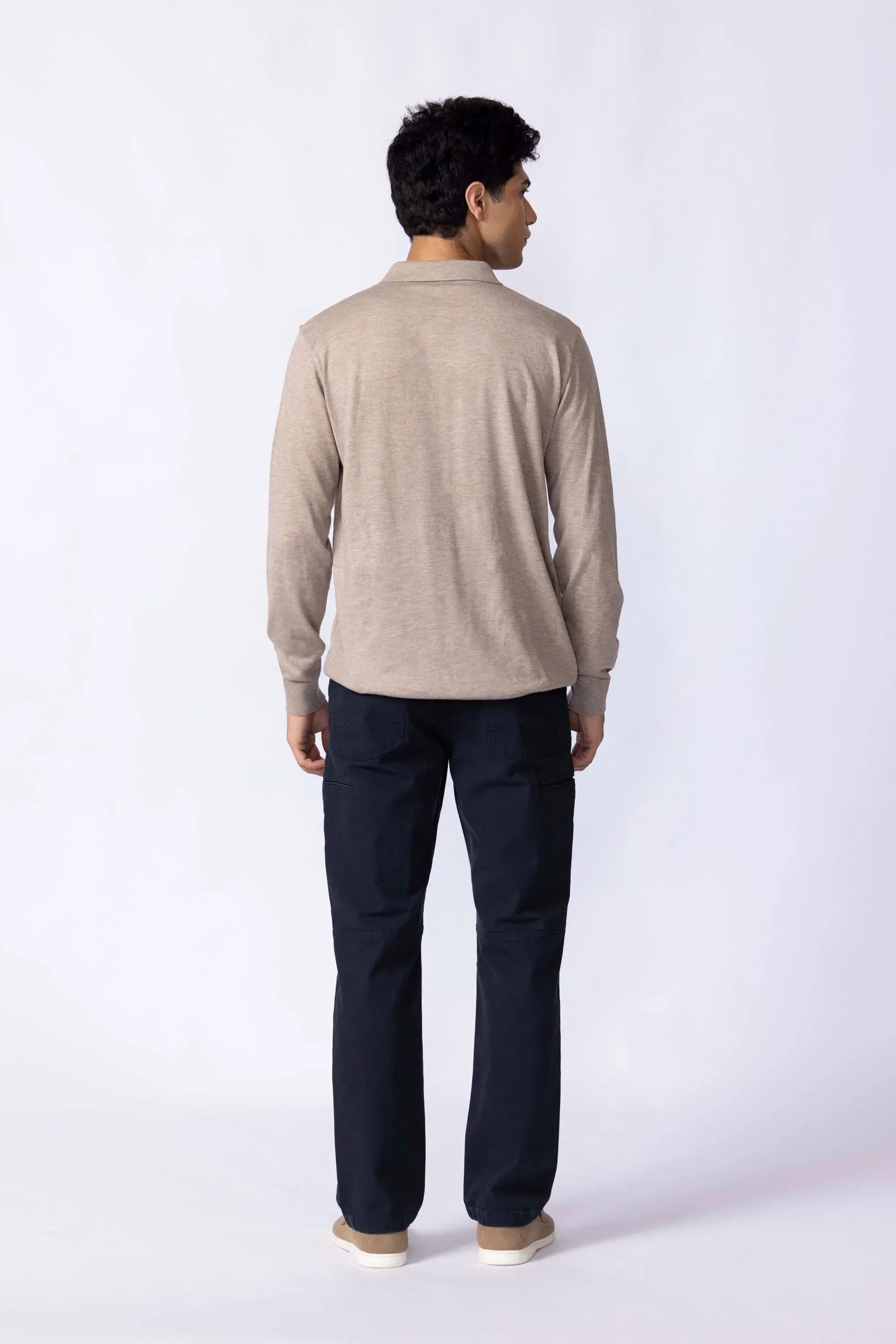 A long-sleeve essential crafted from a smooth-touch knit with natural stretch. Tailored yet relaxed, it offers structure without stiffness, while the lightweight fabric keep it breathable and soft all the day long. Whether you are layering in under a jacket or pairing it with your favorite joggers, this polo is designed to sit seamlessly between smart and casual.