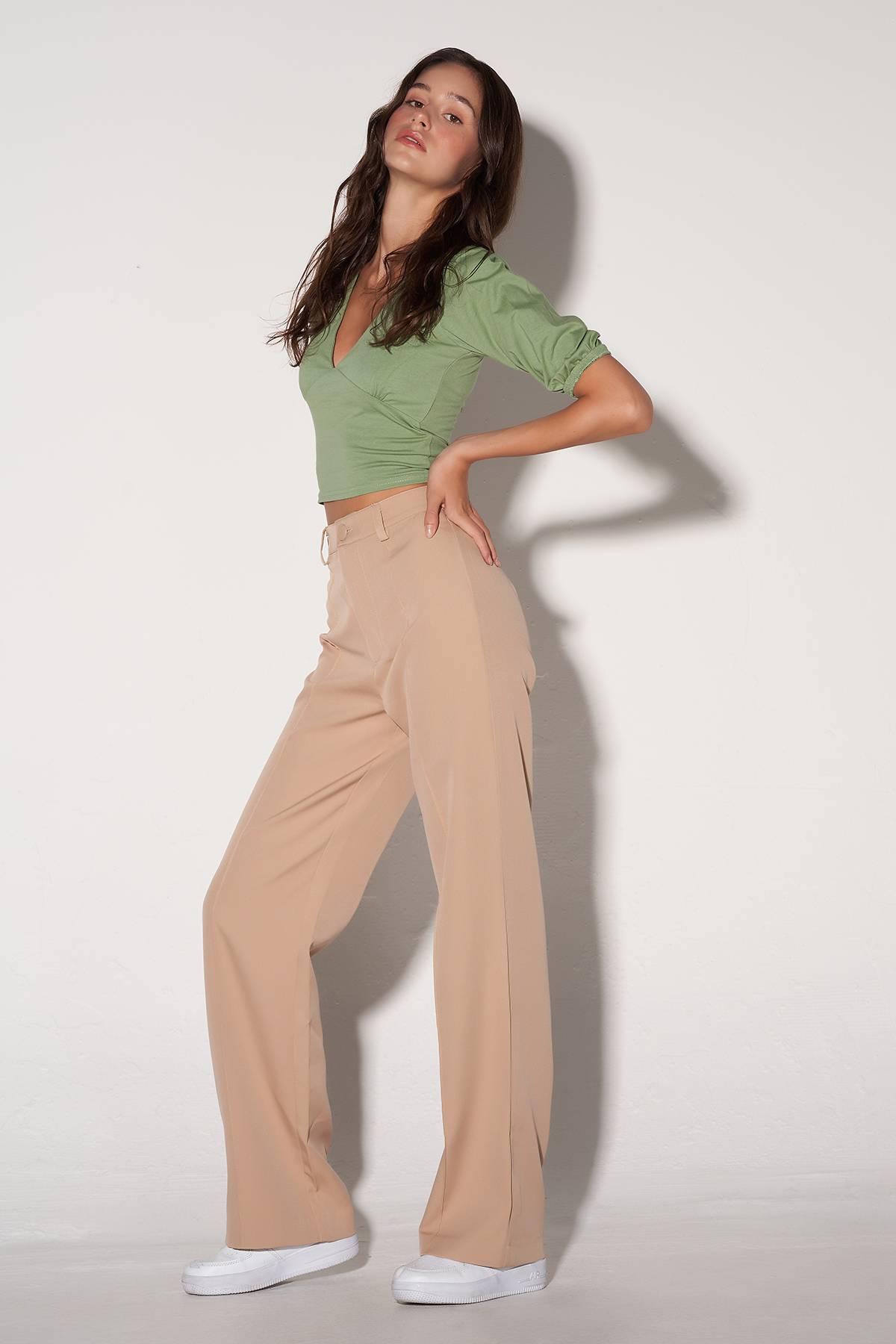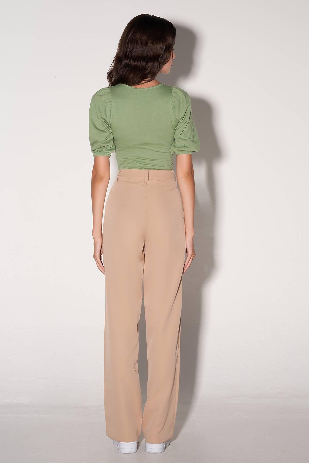 95% Cotton 5% Elastane. Trendy And Dressy Sheath Solid Busteir Top Featuring V Neck With Bust Gathers. 3/4 Puff Sleeves.