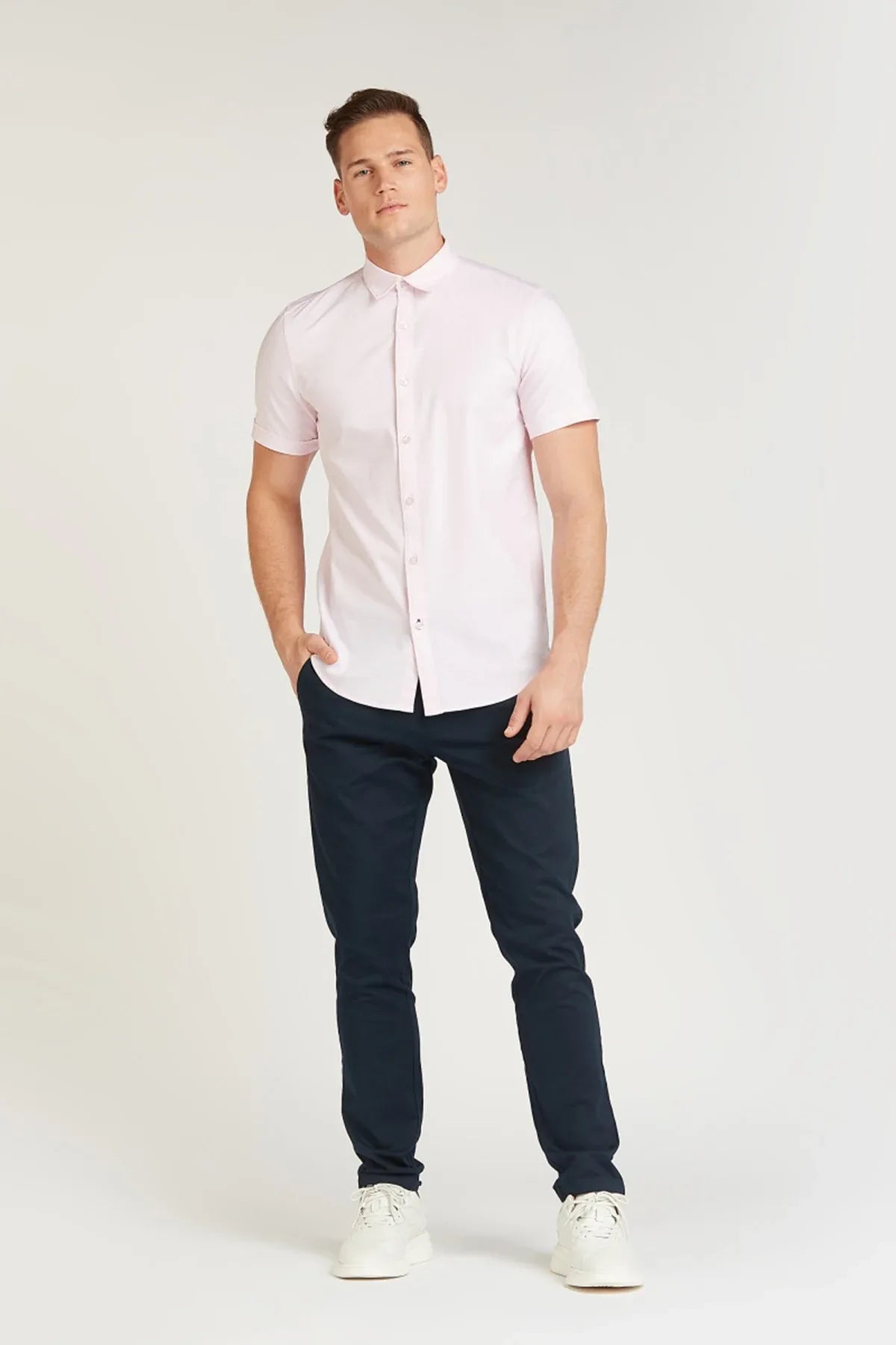 Solid Shirt with Short Sleeves and Spread Collar