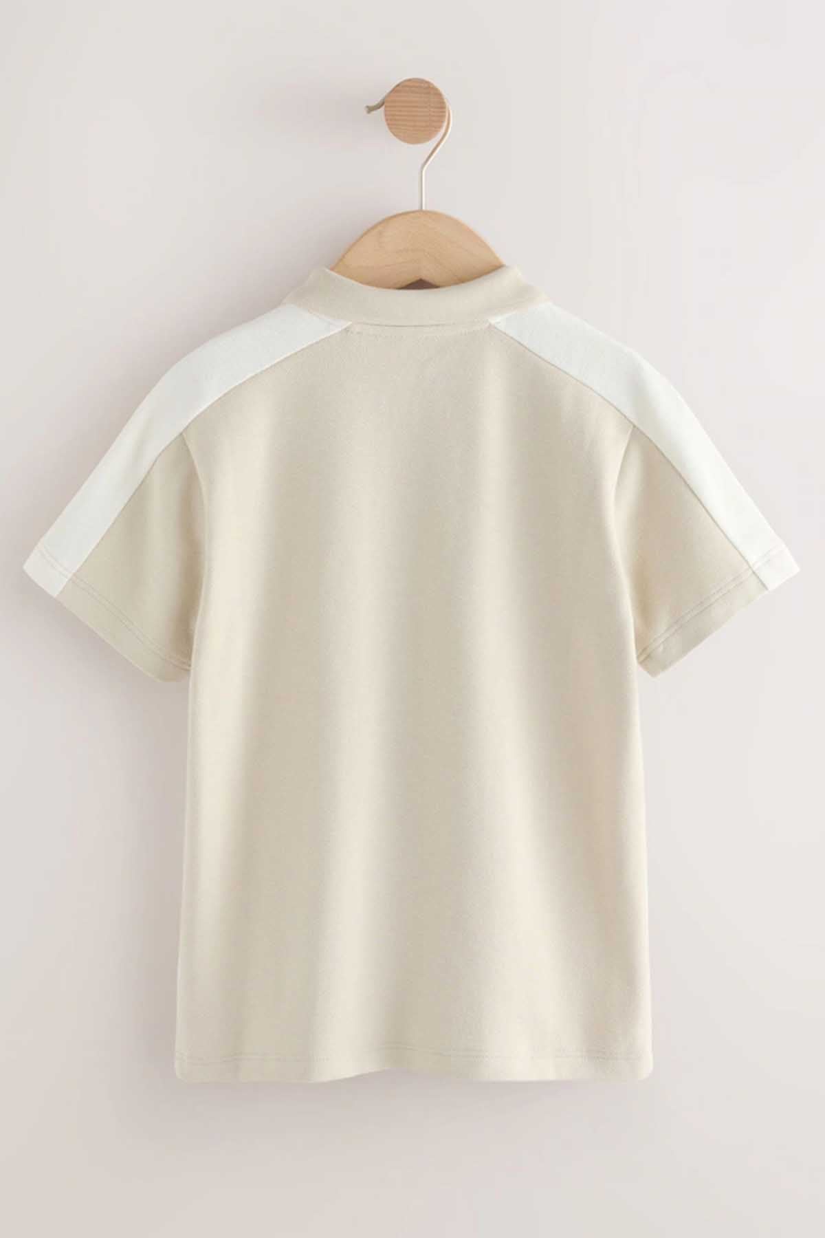 Stone Zip Neck Textured Colourblock Polo Shirt