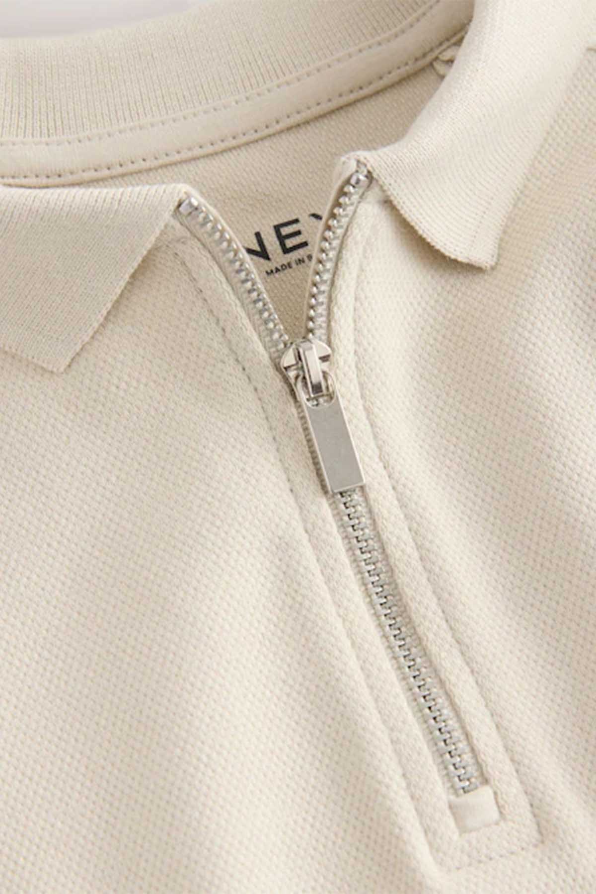 Stone Zip Neck Textured Colourblock Polo Shirt 100% Cotton