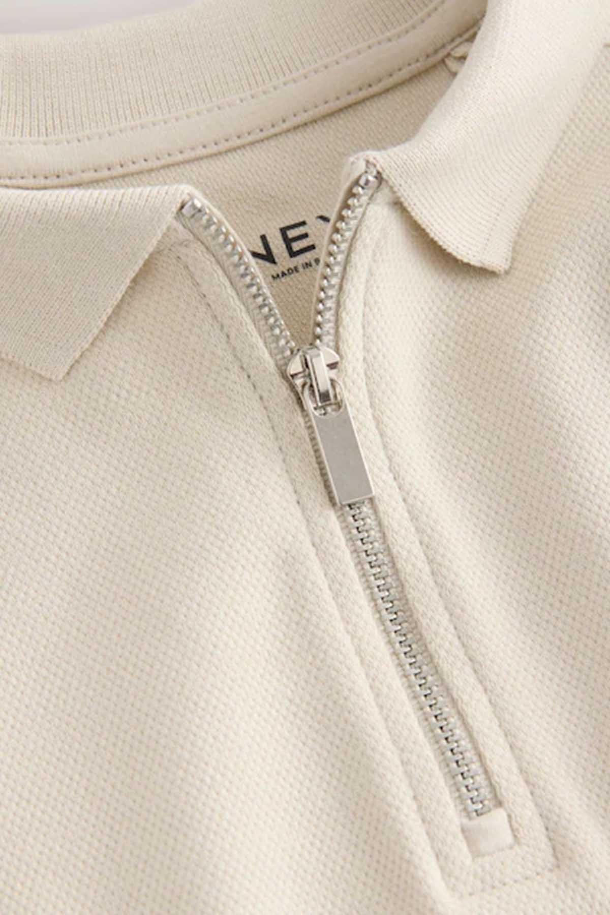 Stone Zip Neck Textured Colourblock Polo Shirt (3-16yrs)