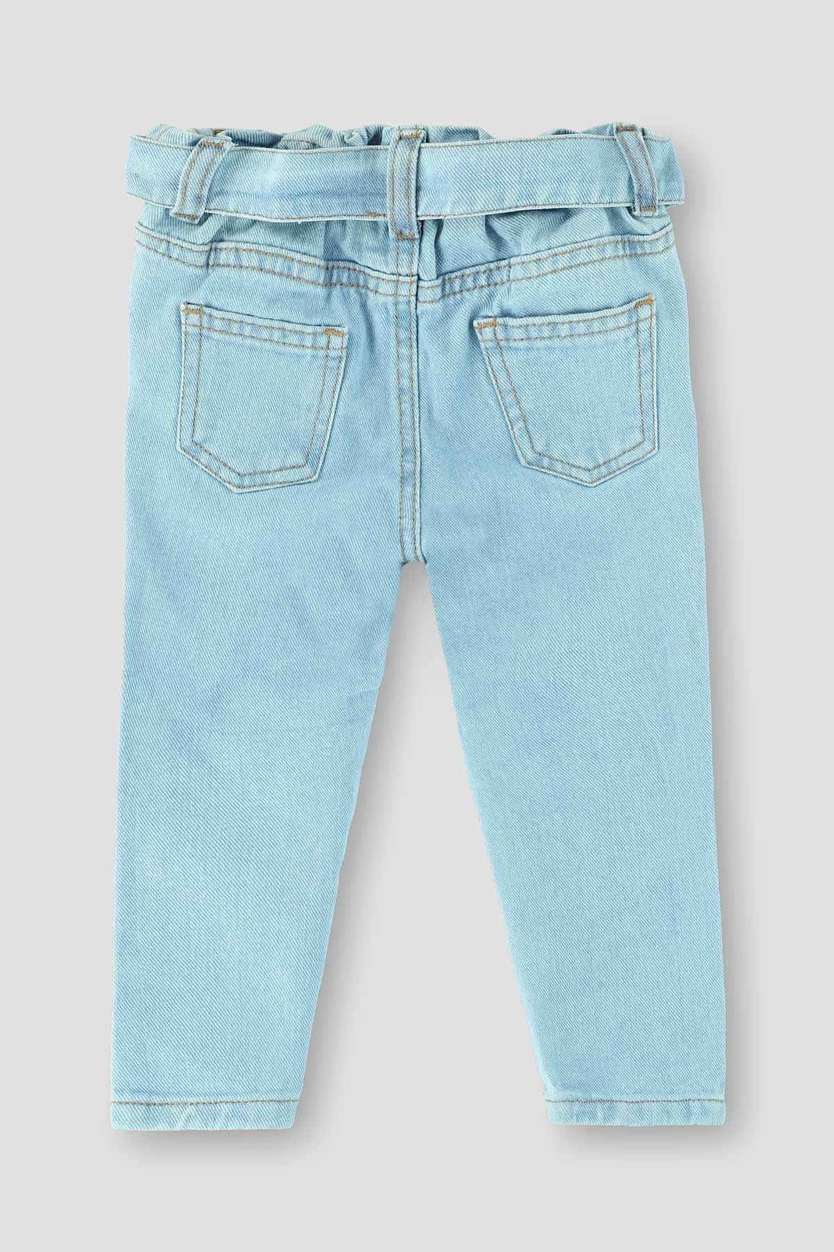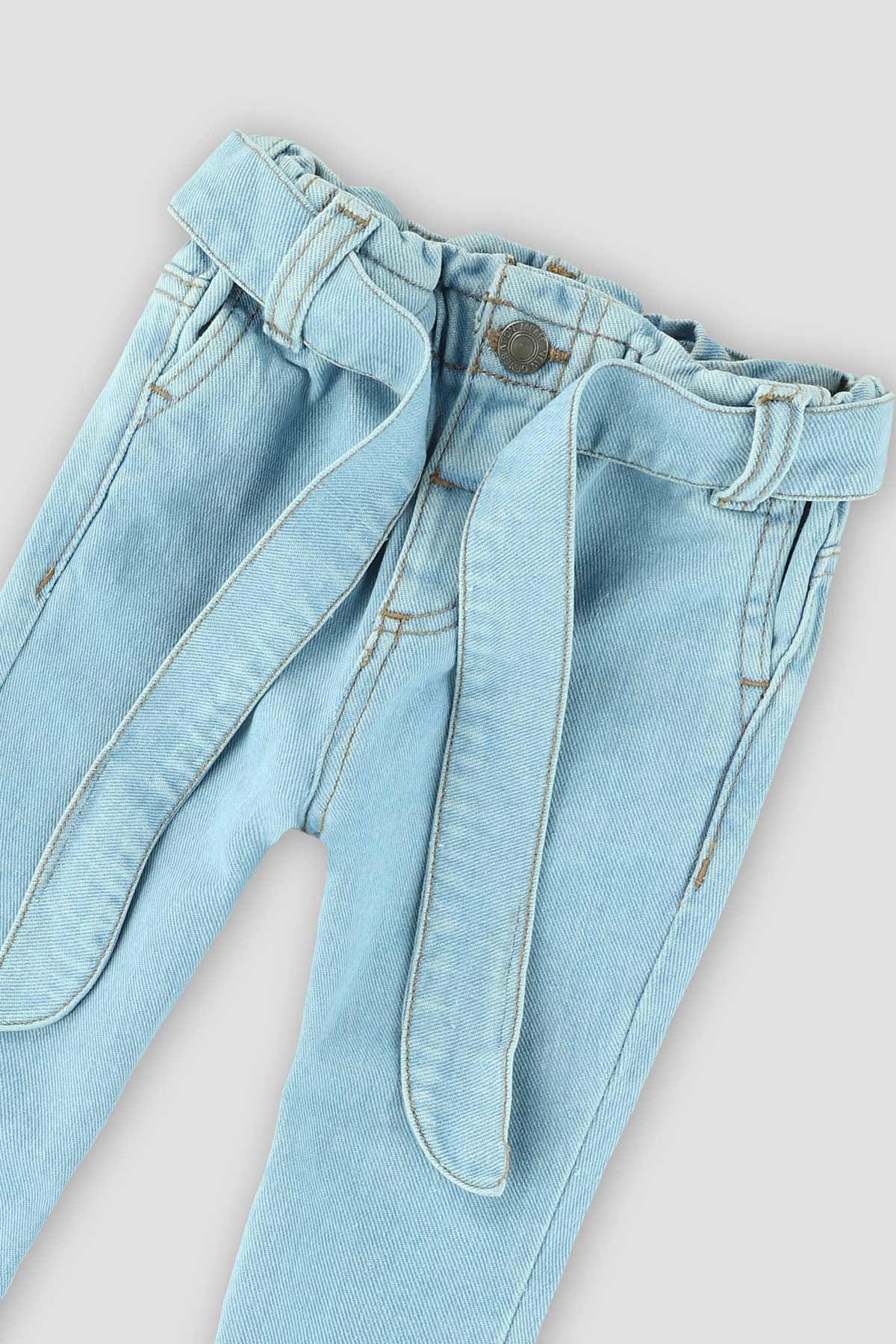 100% Cotton. Regular Waistband With Button And Loops. Front Slash Pockets. Rear Welt Pockets With Denim Belt And Elasticated Waistband