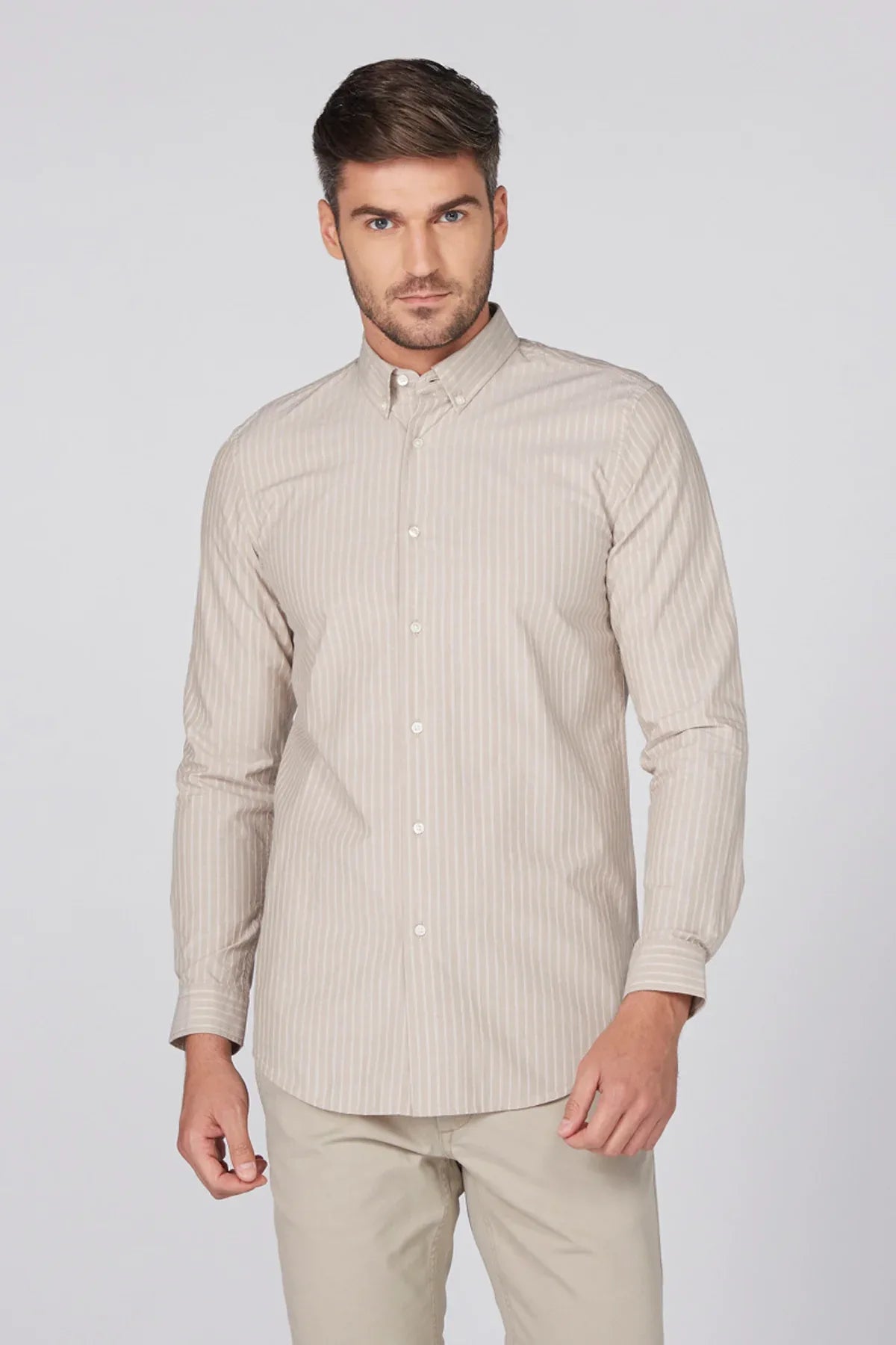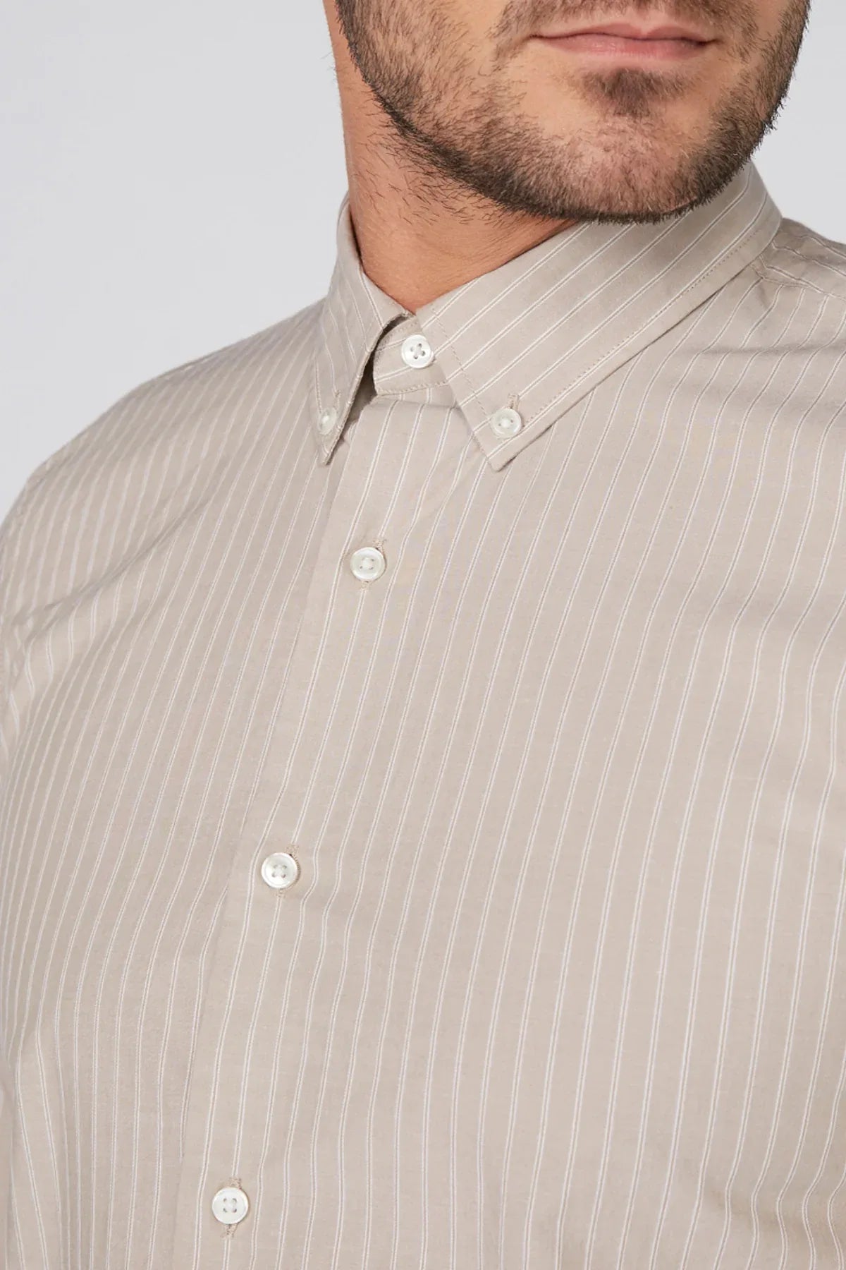 Sleeve Length : Long Sleeves.Design : Striped.Material : 100% Cotton.Neckline : Collared.Occasion : Formal.Model Wears : M.Model Stats : 6'2"/189 CM.