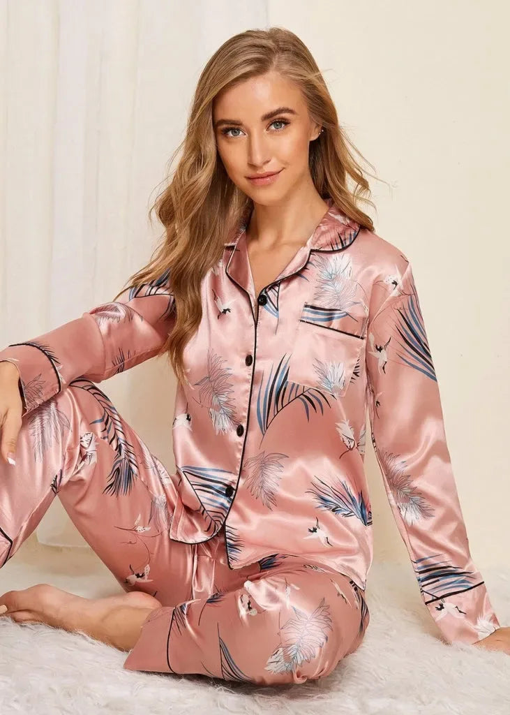 Studio By Arj Leaf Print Satin PJ Set